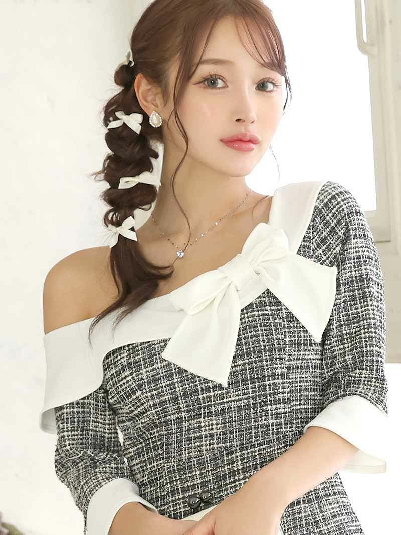 3. マーメイドラインミックスツイード韓国風ワンピース【Ryuyu】(S/M/L)(ブラック) ptpl