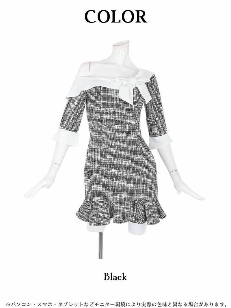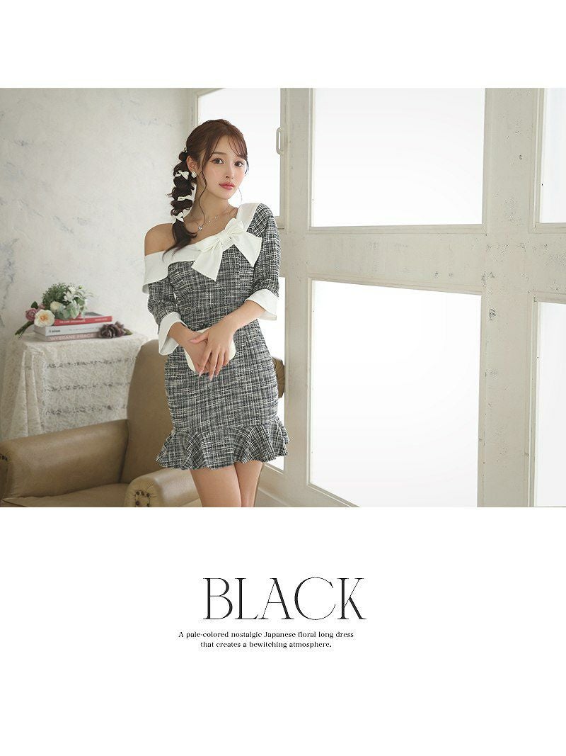 4. マーメイドラインミックスツイード韓国風ワンピース【Ryuyu】(S/M/L)(ブラック) ptpl