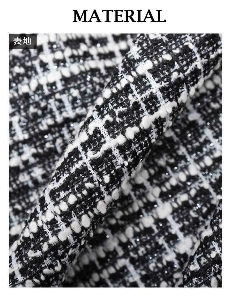 ミックスツイードとチェックツイードの組み合わせが特徴的で華やかさと上品さを両立しました。