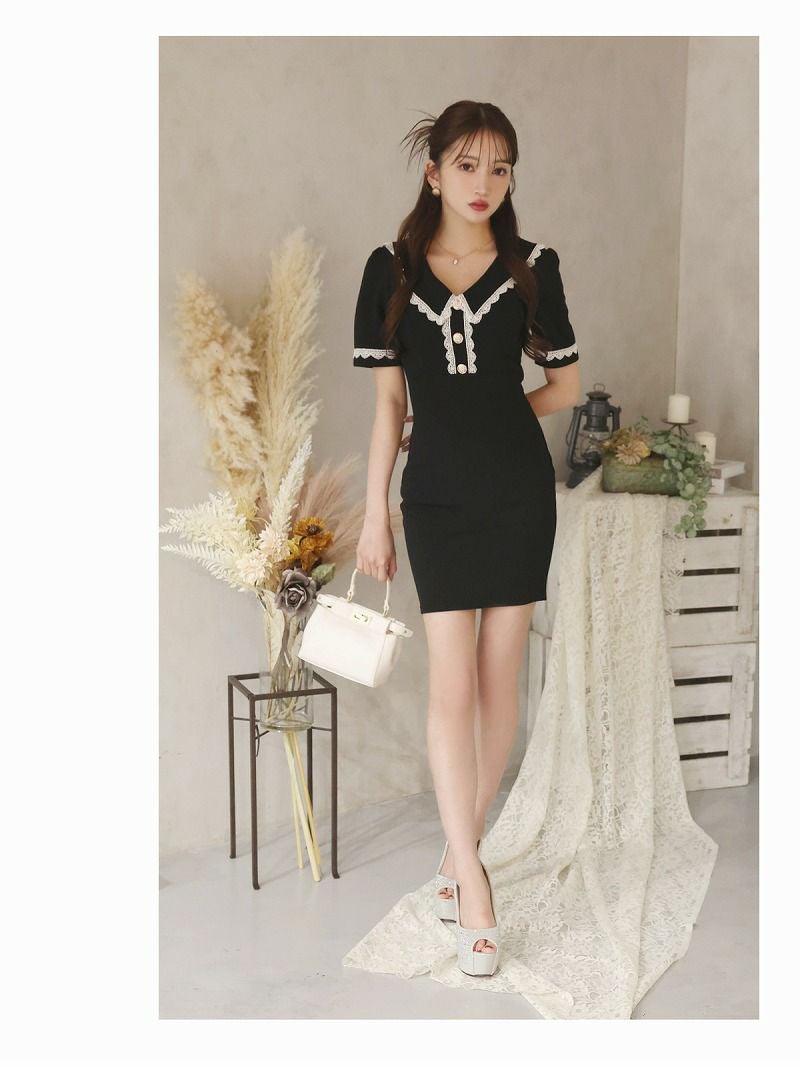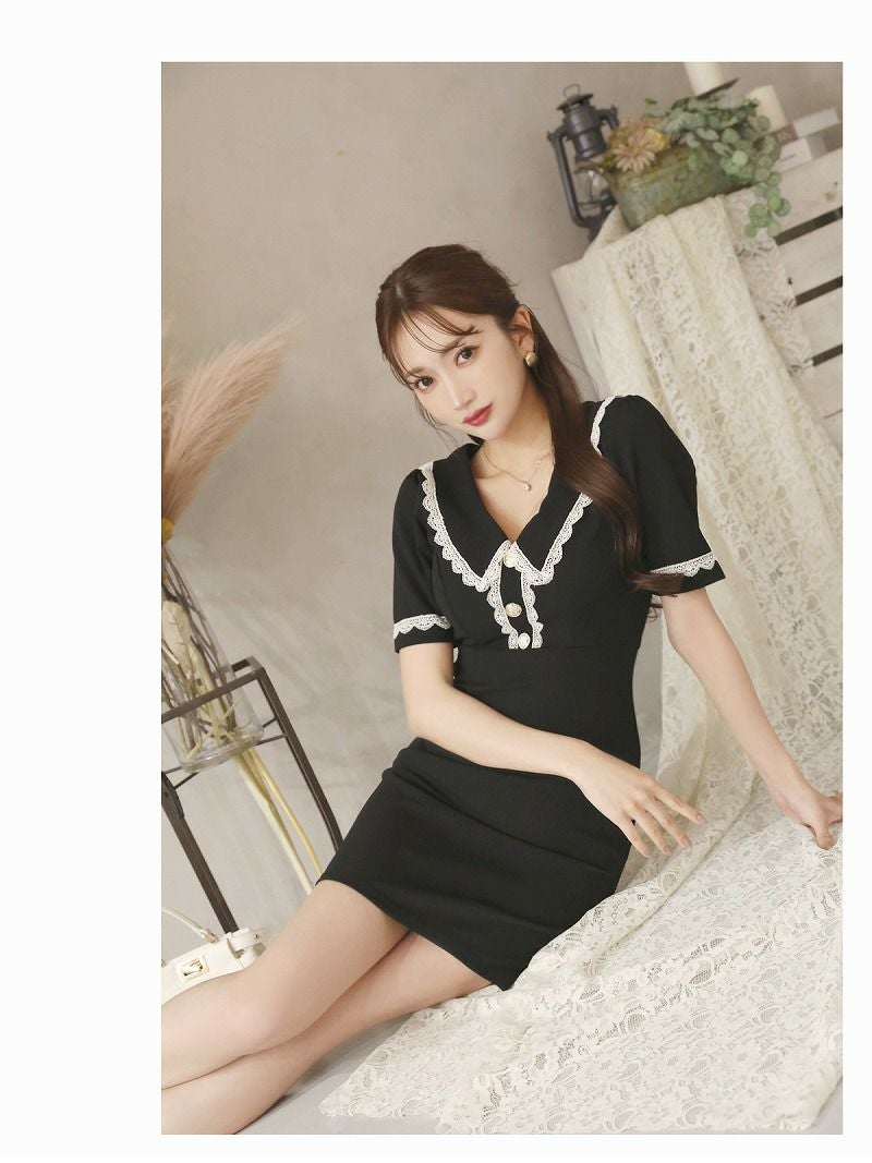レース付き袖が可愛い半袖タイトミニ丈キャバワンピース【Ryuyu】