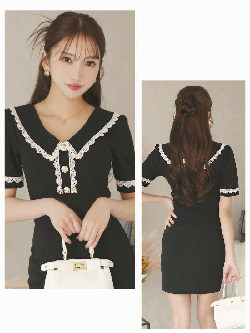 愛されキャバカワわんぴーす♪ レース付き袖が可愛い半袖タイトミニ丈キャバワンピース【Ryuyu】(S/M/L)(ブラック) ptpl