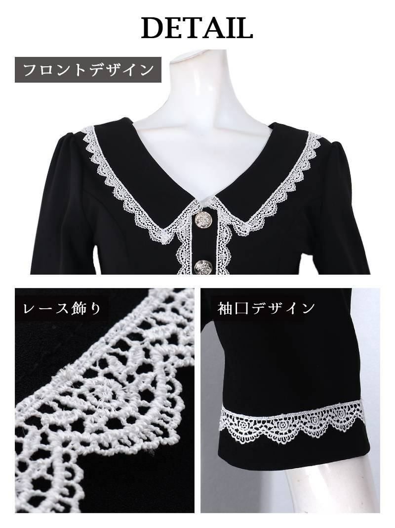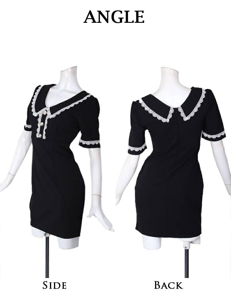 4. レース付き袖が可愛い半袖タイトミニ丈キャバワンピース【Ryuyu】(S/M/L)(ブラック) ptpl