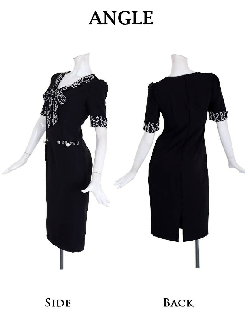 ボウタイリボンがお顔まわりに華やかさを演出してくれるセレブワンピースです。
