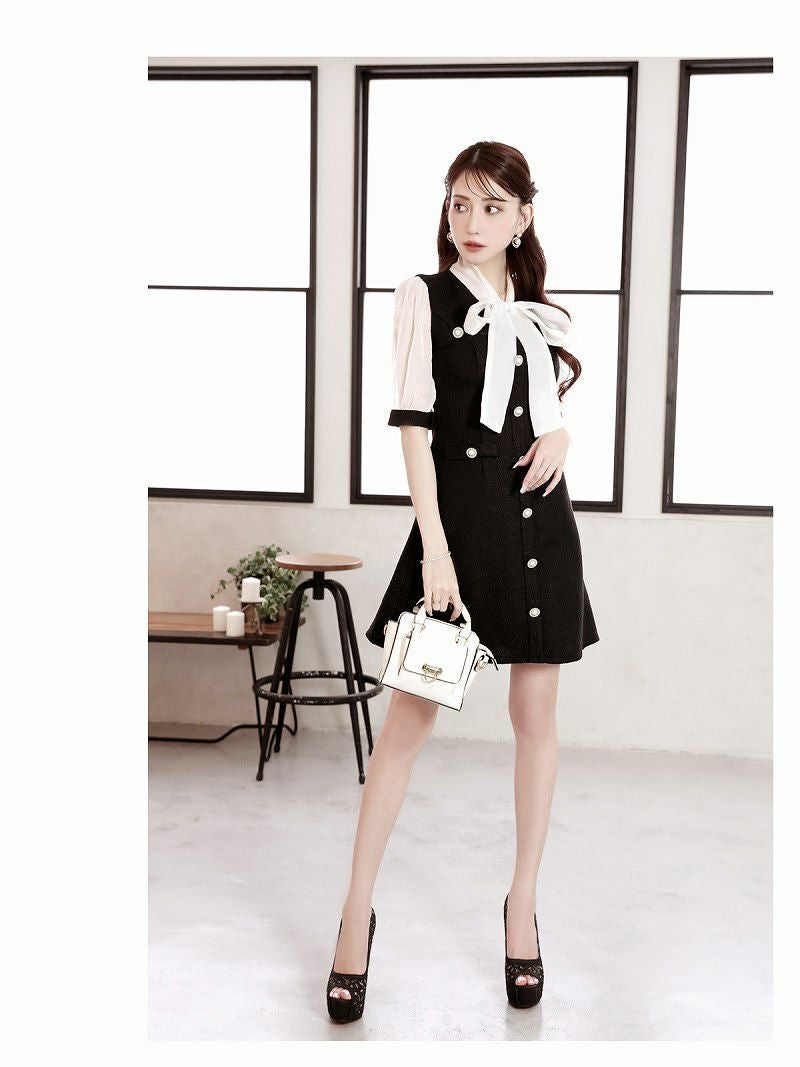 ボータイレイヤード風ドールワンピース 加賀美早紀 着用 キャバワンピ【Belsia】