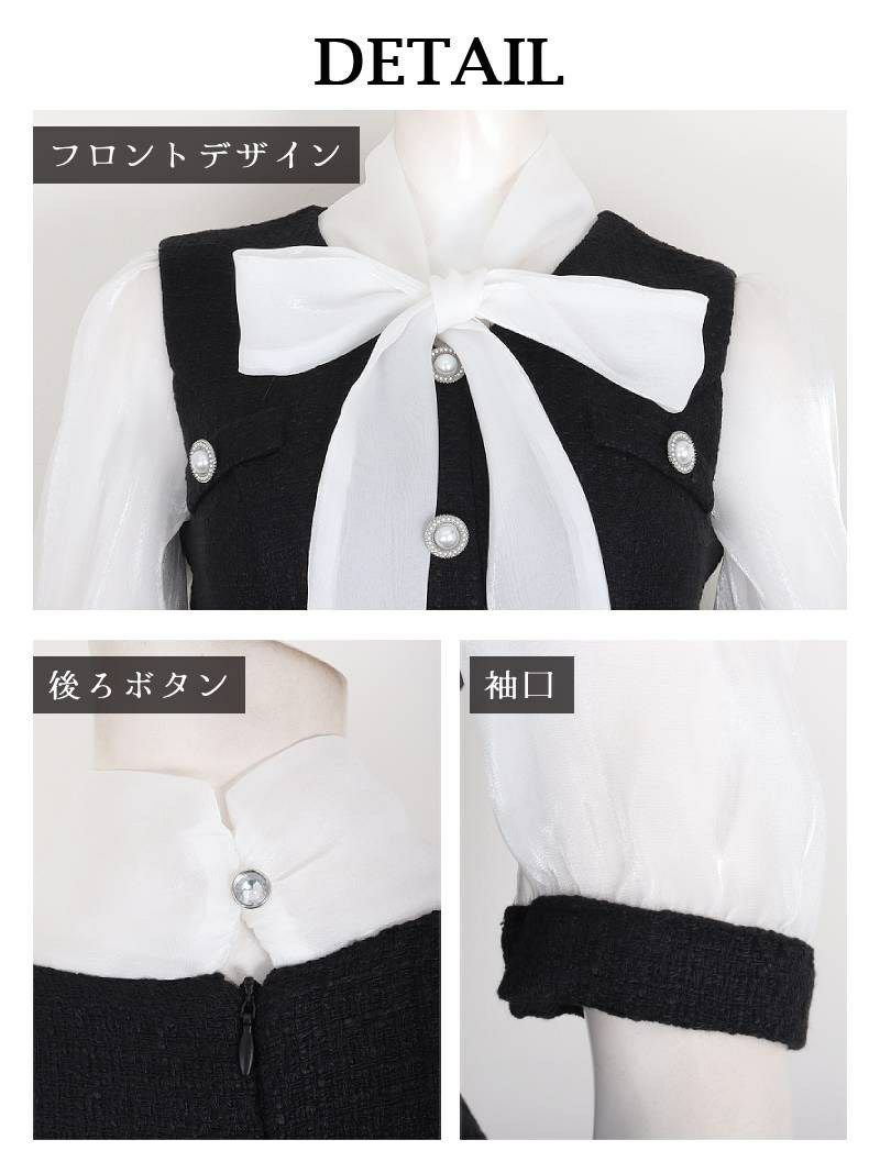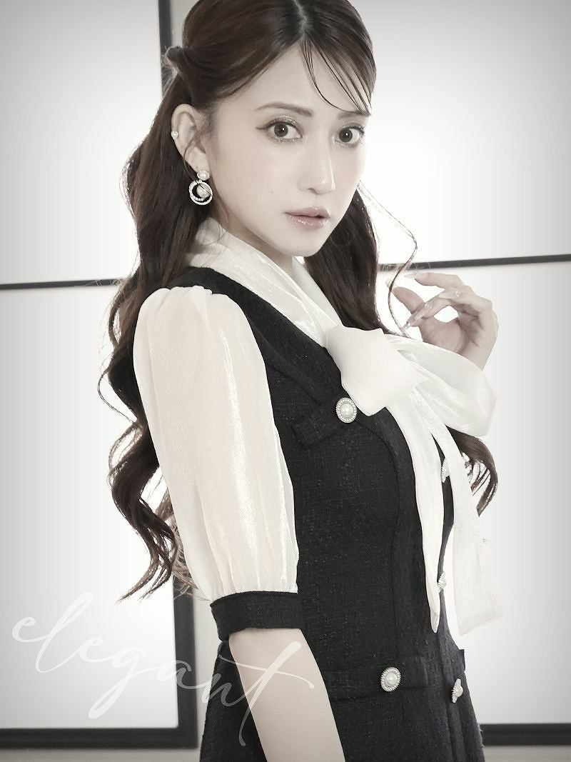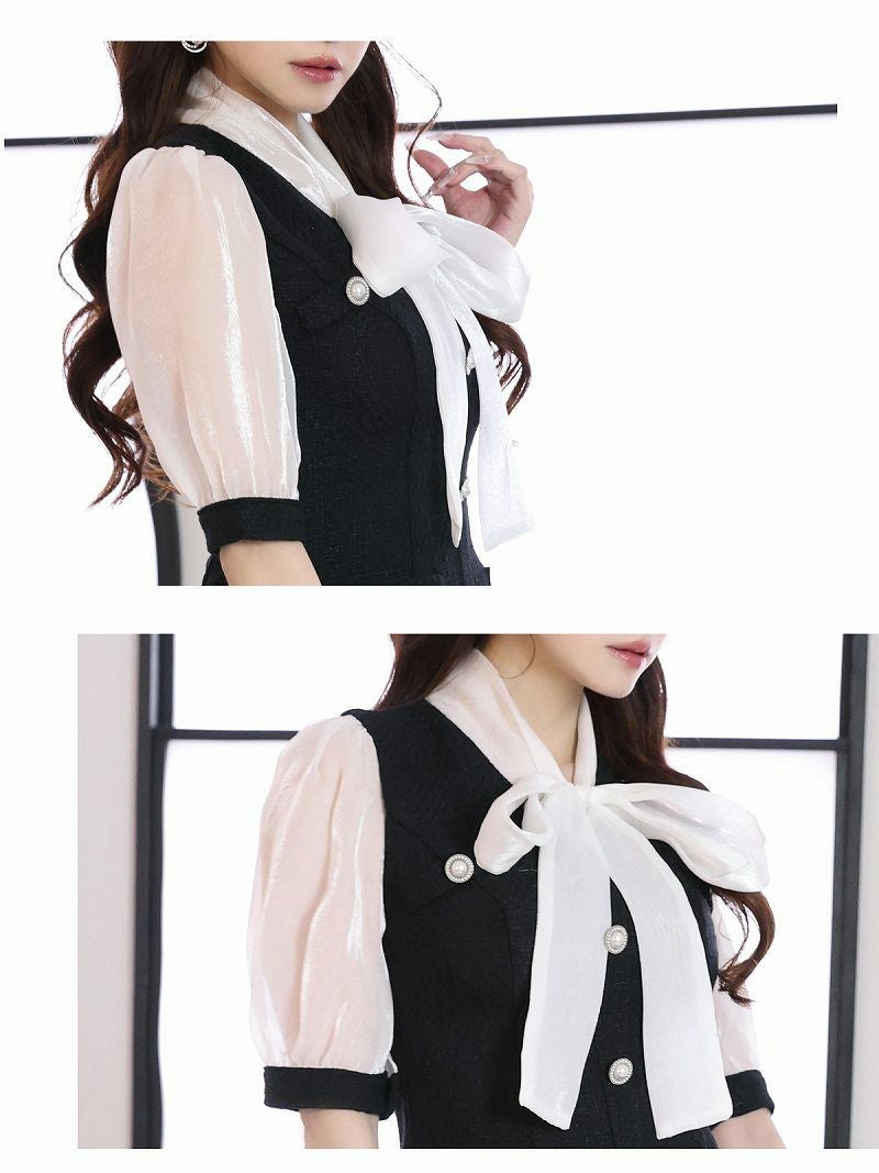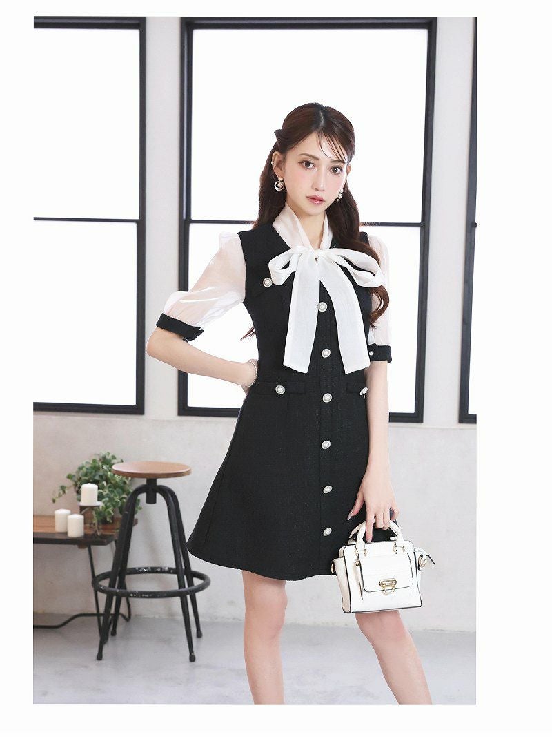 キャバクラシーンに映える、韓国風のツイード×シフォンのドールワンピースです。