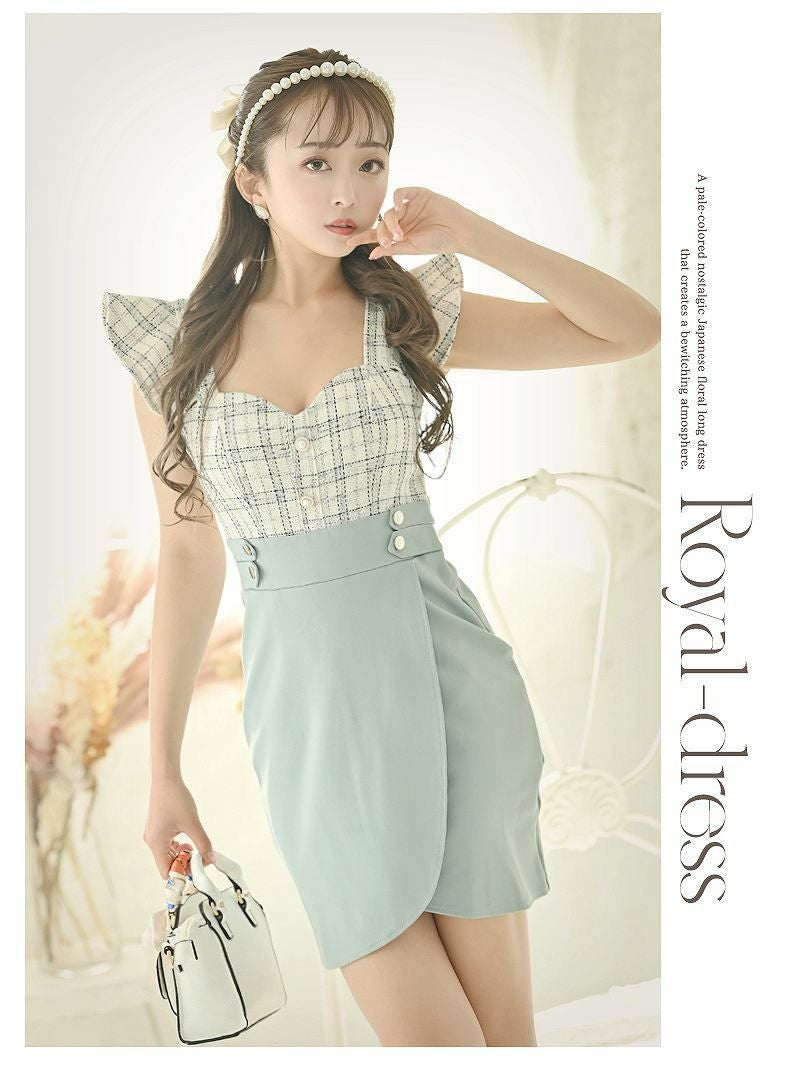 4. 【訳ありアウトレット】可愛いツイードチェック柄ミニキャバドレス【Ryuyu】(S/M/L)(ブルー/グリーン/ブラック) ptpl