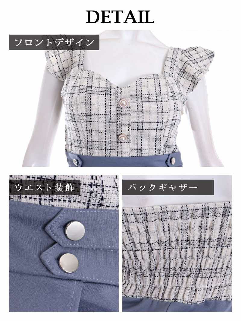 5. 【訳ありアウトレット】可愛いツイードチェック柄ミニキャバドレス【Ryuyu】(S/M/L)(ブルー/グリーン/ブラック) ptpl