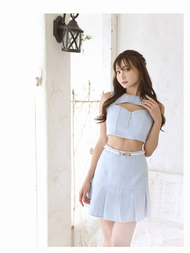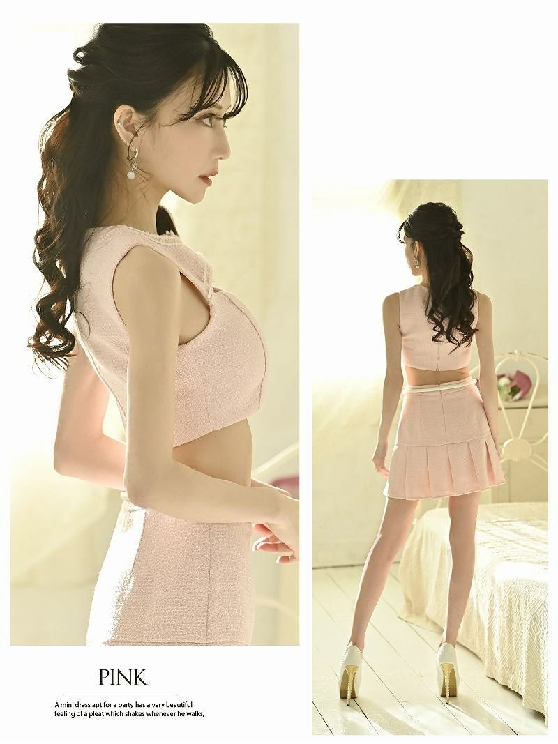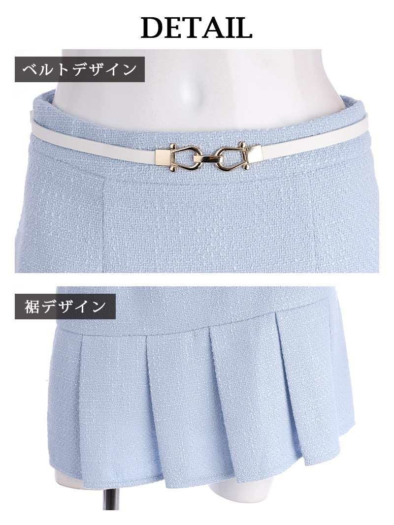 6. 【訳ありアウトレット】品格ツイードミニスカートセットアップキャバドレス【Belsia】(S/M/L)(ブルー/ピンク)