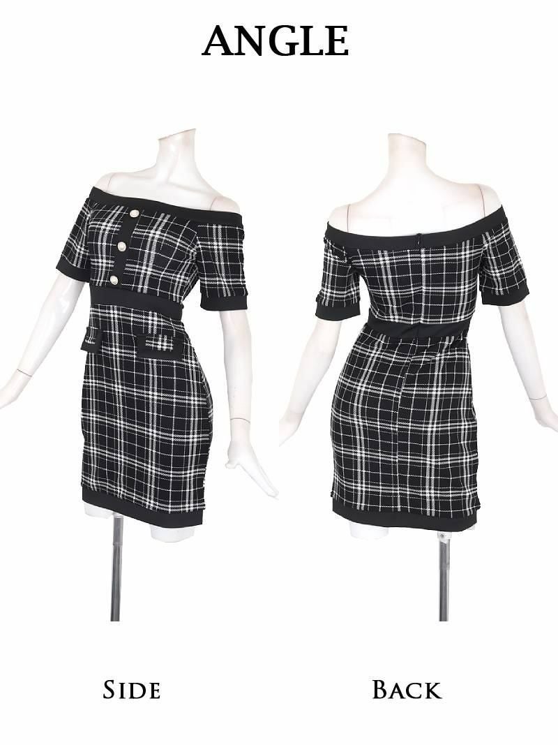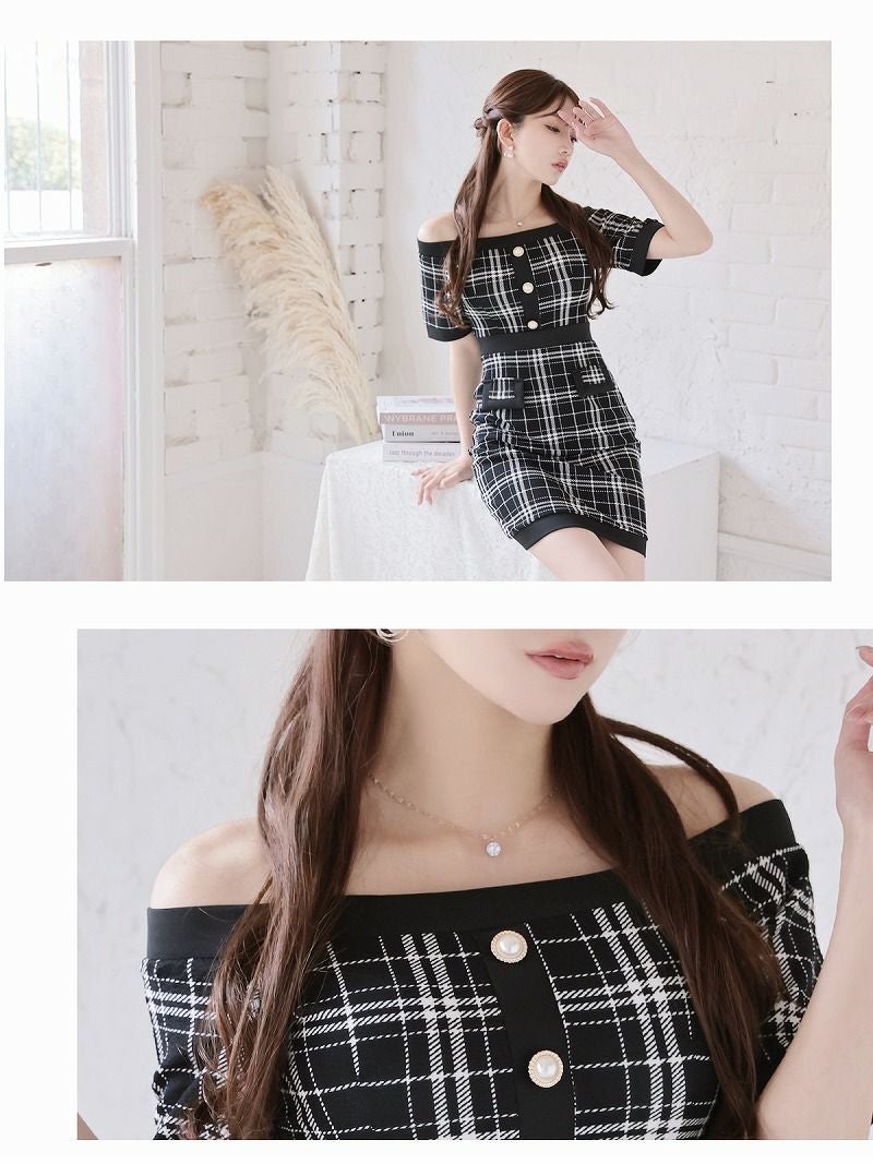 大人ドール風チェック柄オフショルタイトキャバ嬢ミニドレス【Ryuyu】