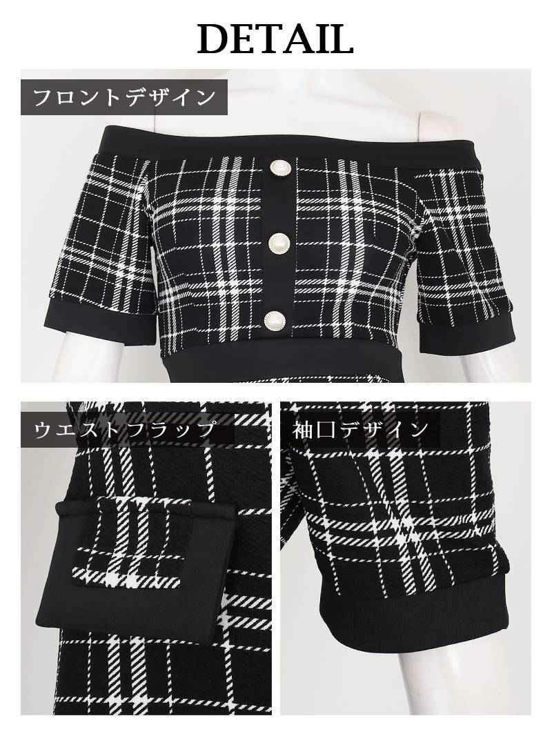 上品でかわいい男モテドレス! 大人ドール風チェック柄オフショルタイトキャバ嬢ミニドレス【Ryuyu】(S/M/L/XL)(ブラック) ptpl