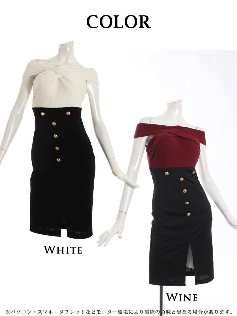 5. 【訳ありアウトレット】デコルテ魅せセクシー韓国美女キャバワンピース【DAYS PIECE】(S/M/L)(ホワイト/ワイン) ptpl