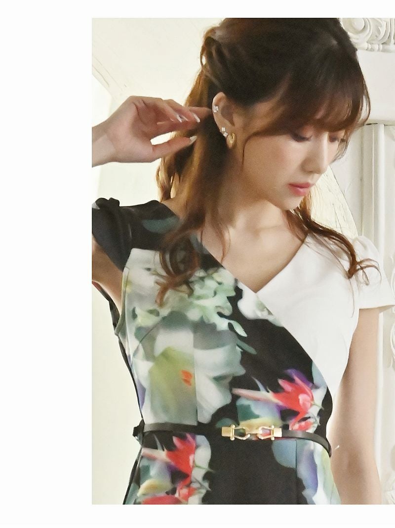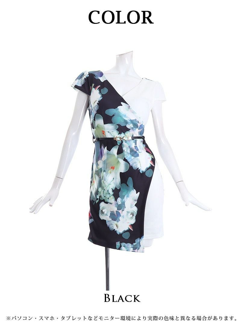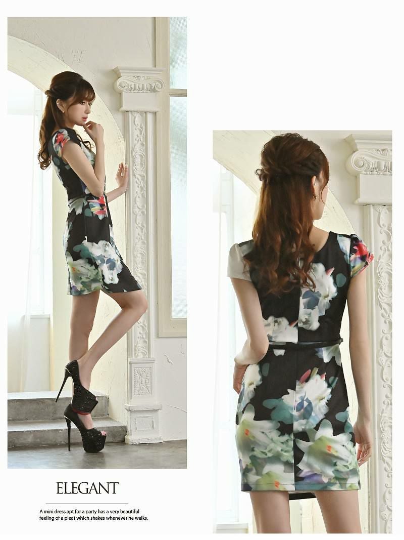 上品な花柄が特徴の、セクシーで華やかなミニ丈キャバドレス。