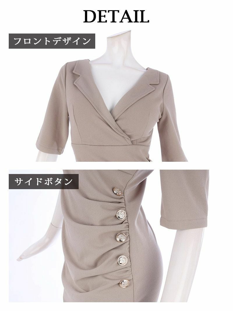 4. 【訳ありアウトレット】シャツ襟デザインタイトミニ韓国キャバワンピース【DAYS PIECE】(S/M/L/XL)(ブラック/ベージュ) ptpl