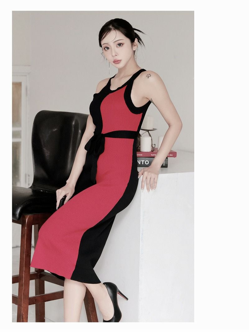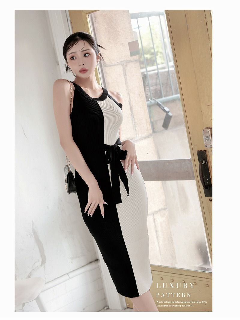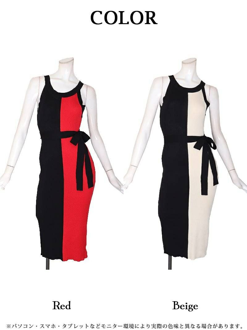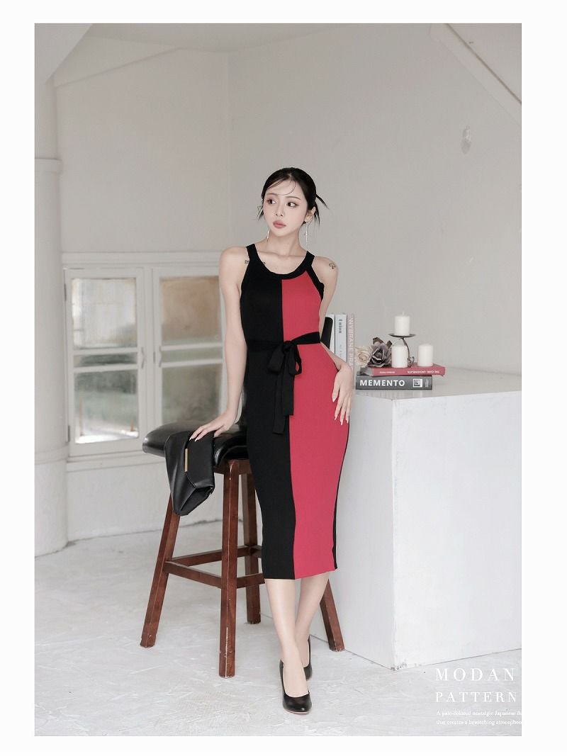 バイカラー切り替えが細見え叶えるタイトロングなワンピース♪