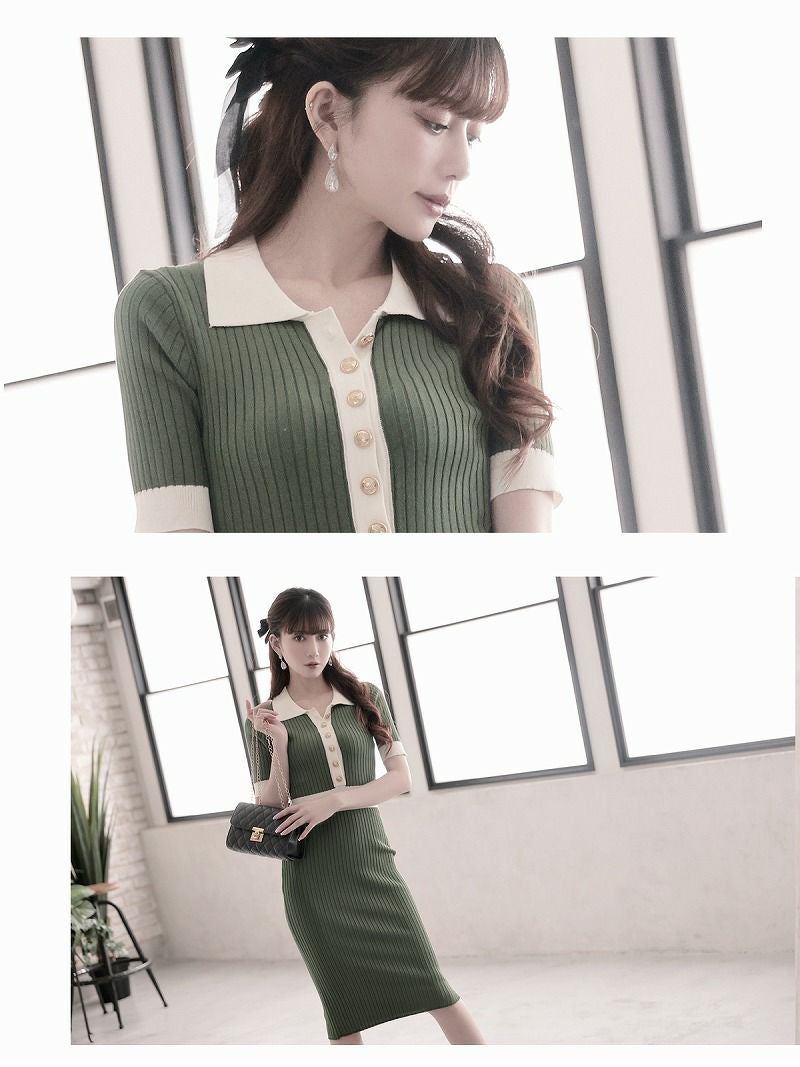 5. 先行予約割¥6980→¥6630!※一部予約販売※上品美シルエット半袖ニットキャバワンピース 加賀美早紀 着用 キャバドレス【Belsia】(M)(ネイビー/グリーン) ptpl