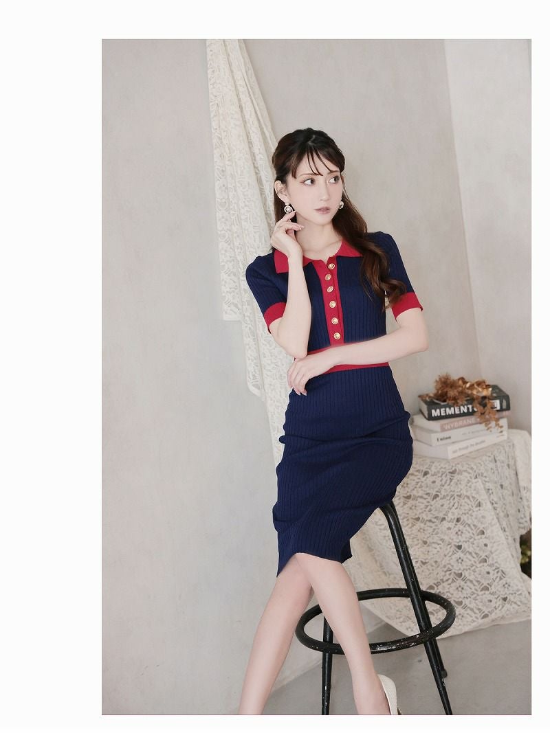 上品美シルエット半袖ニットキャバワンピース 加賀美早紀 着用 キャバドレス【Belsia】