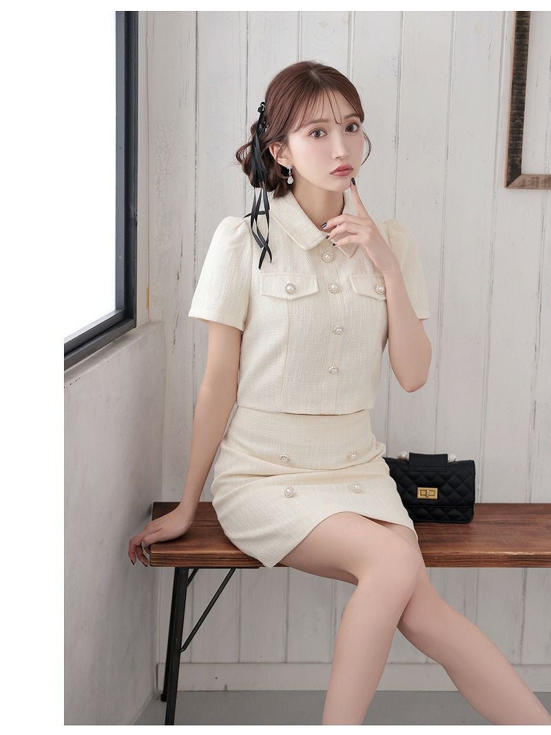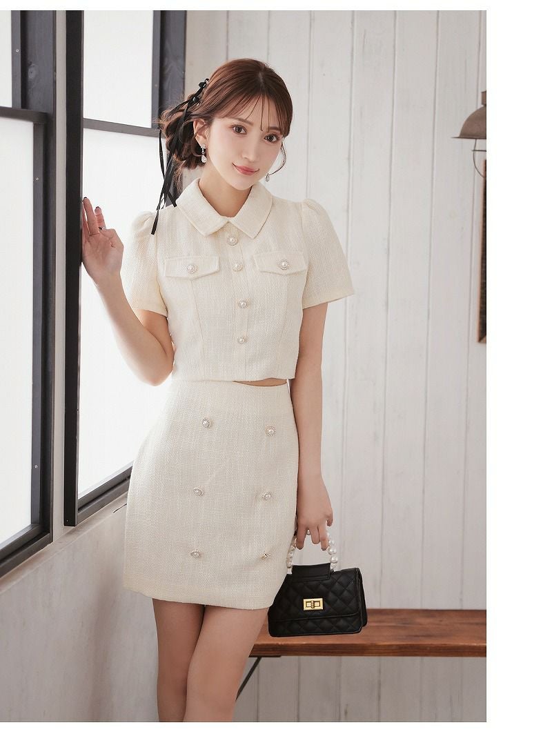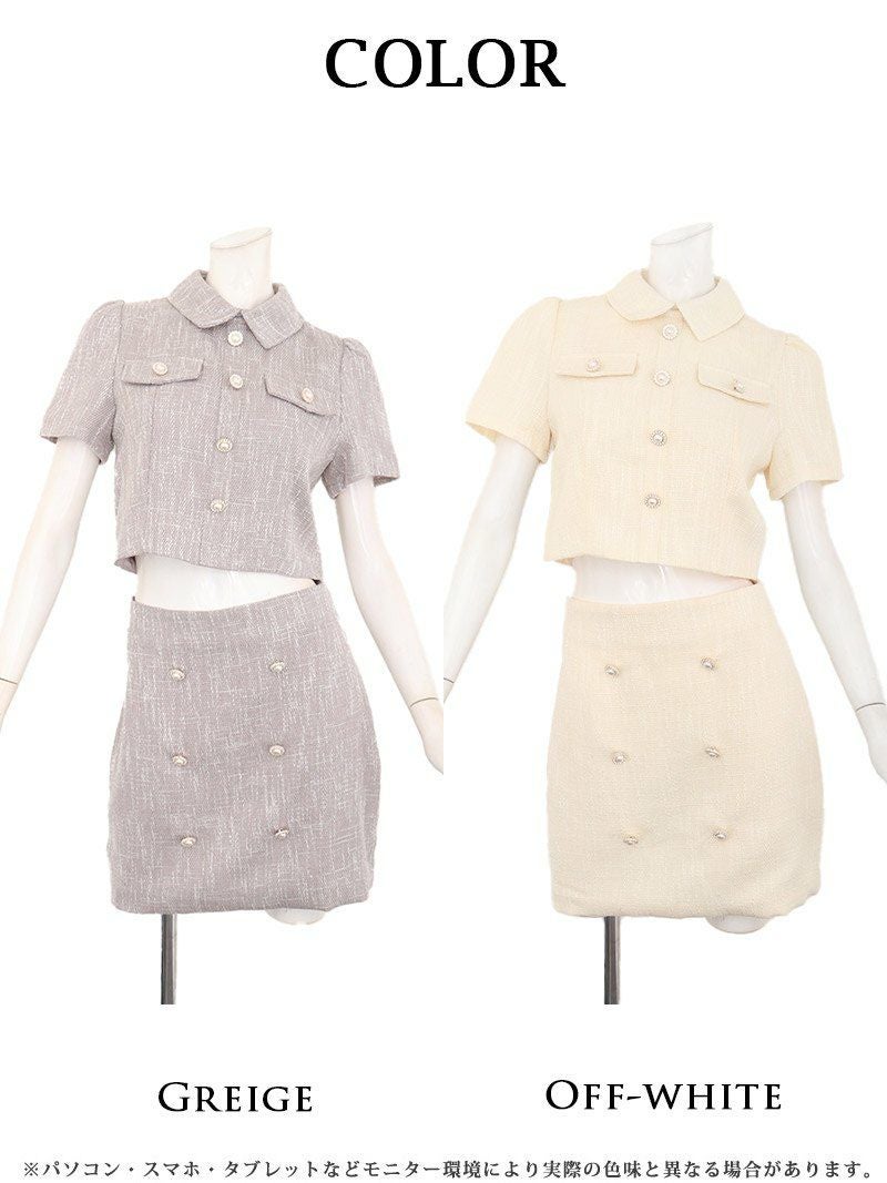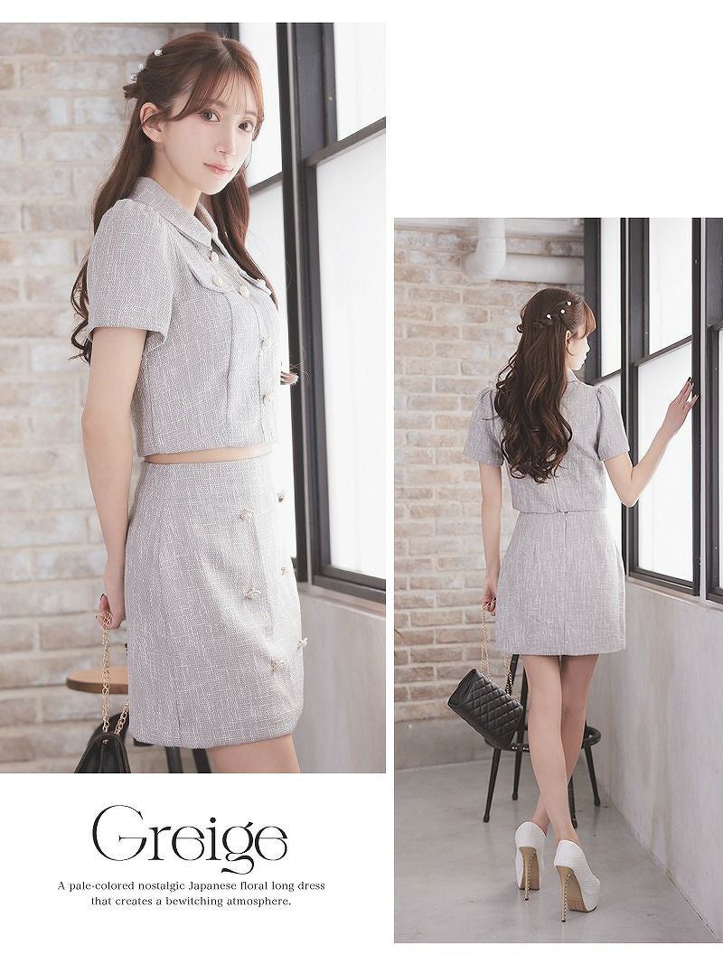 上品な甘さでお客様を虜にする韓国風セットアップ! ドーリークラシカルツイードセットアップドレス【Ryuyu】(S/M/L)(グレージュ/オフホワイト)