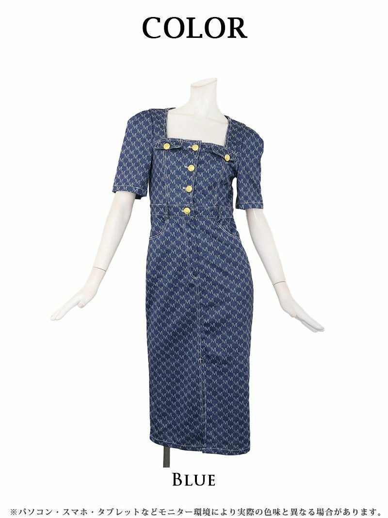 大人の余裕を漂わせる、デニム×韓国ドレスの絶妙バランス 先行予約割¥7980→¥7581!※一部予約販売※ハイウエストデニムミディ丈韓国ワンピース KANO 着用 キャバドレス【DAYS PIECE】(S/M/L/XL(2L))(ブルー)