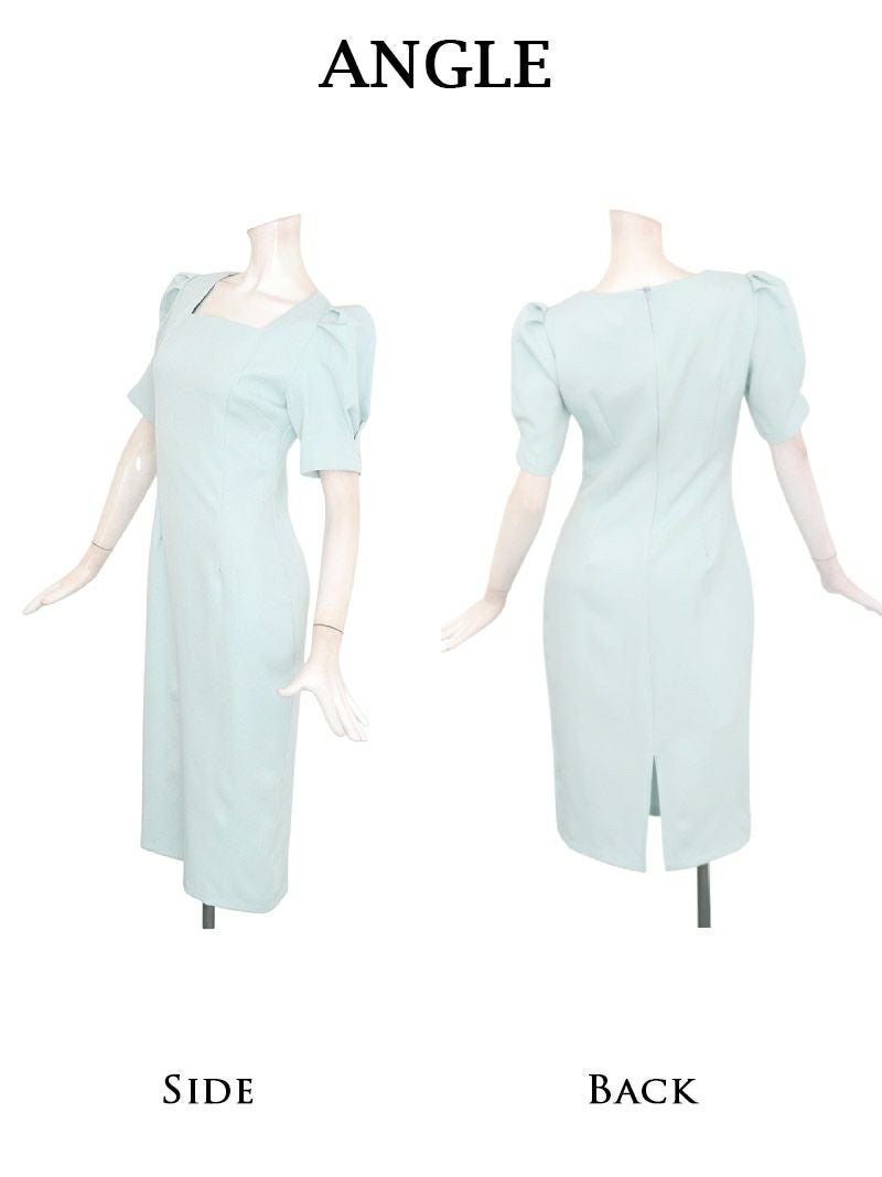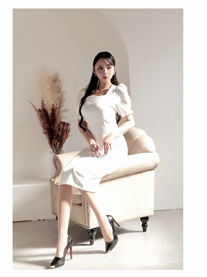 スクエアネックの美デコルテとパフ袖が大人可愛いミディ丈韓国風ワンピース KANO 着用 キャバワンピース【DaysPiece】