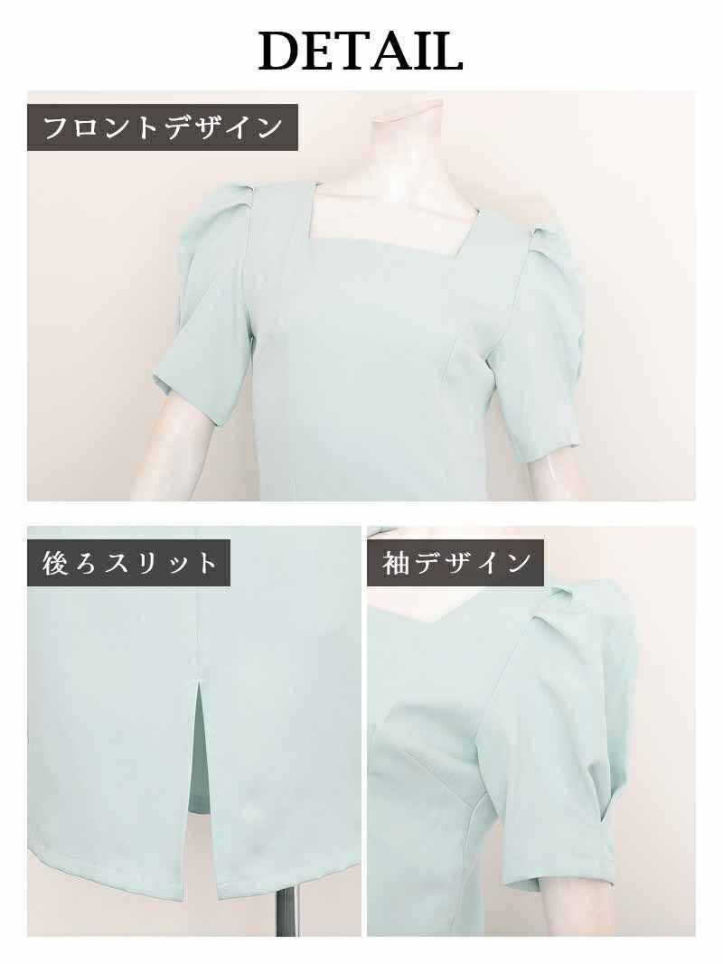 4. スクエアネックの美デコルテとパフ袖が大人可愛いミディ丈韓国風ワンピース KANO 着用 キャバワンピース【DaysPiece】(S/M/L)(ホワイト/グリーン)