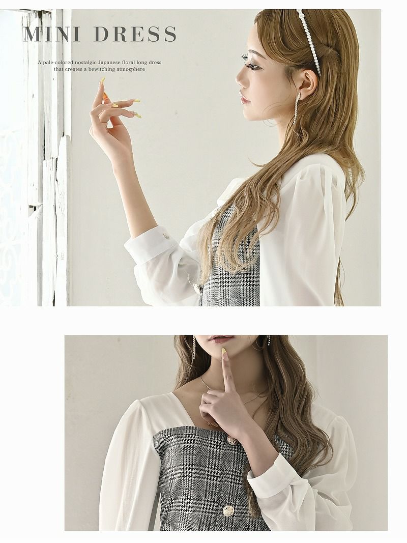 ※予約販売※シアーチェック柄韓国風タイトキャバワンピース りおん 着用 レイヤード風ワンピース【RyuyuChick】