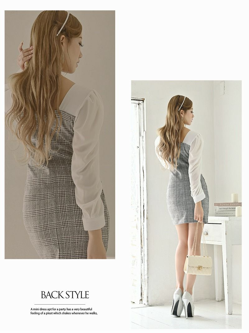 5. 先行予約割¥4280→¥4065!※一部予約販売※シアーチェック柄韓国風タイトキャバワンピース りおん 着用 レイヤード風ワンピース【RyuyuChick】(S/M/L/XL(2L))(グレー)