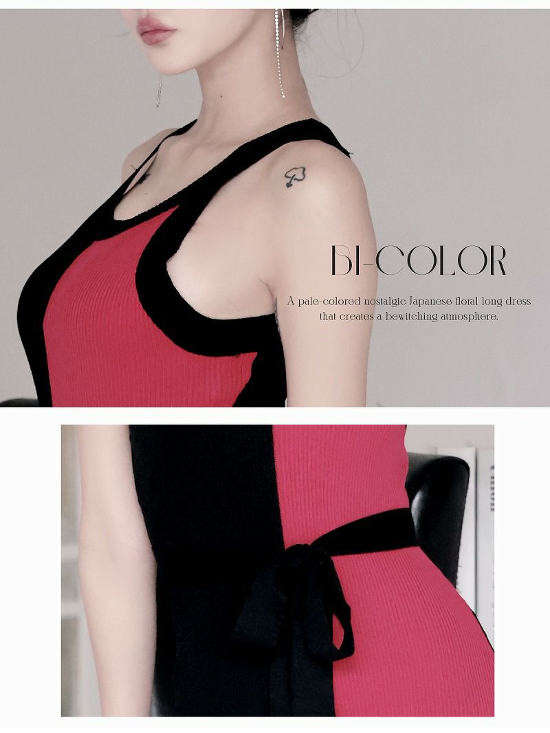 バイカラー切り替えが細見え叶えるタイトロングなワンピース♪
