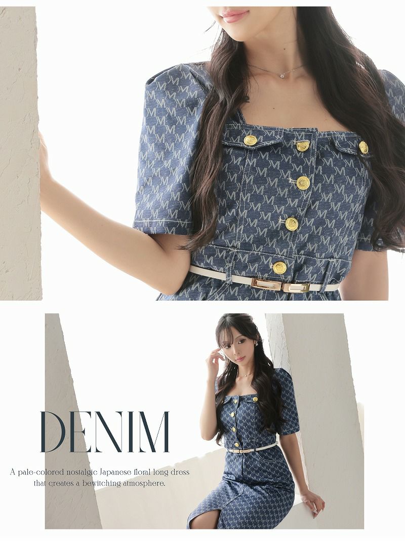 ハイウエストデニムミディ丈韓国ワンピース KANO 着用 キャバドレス【DAYS PIECE】