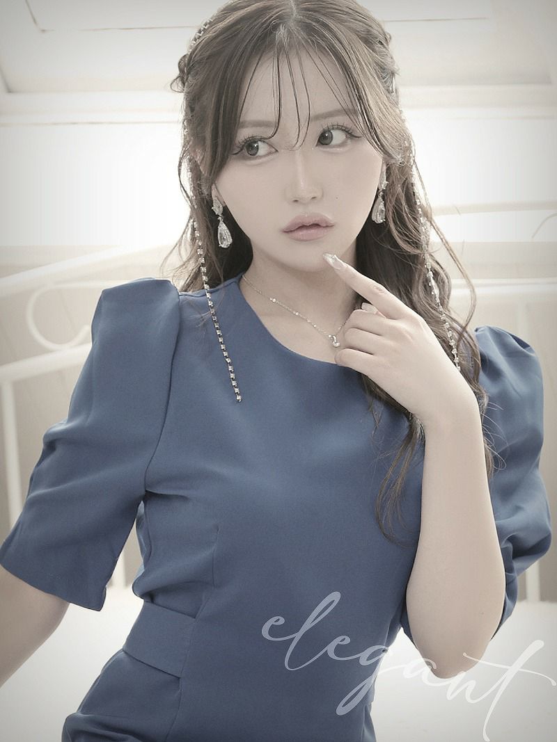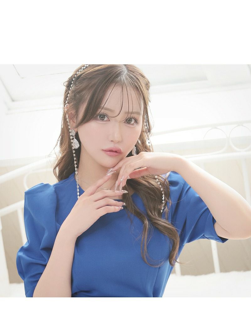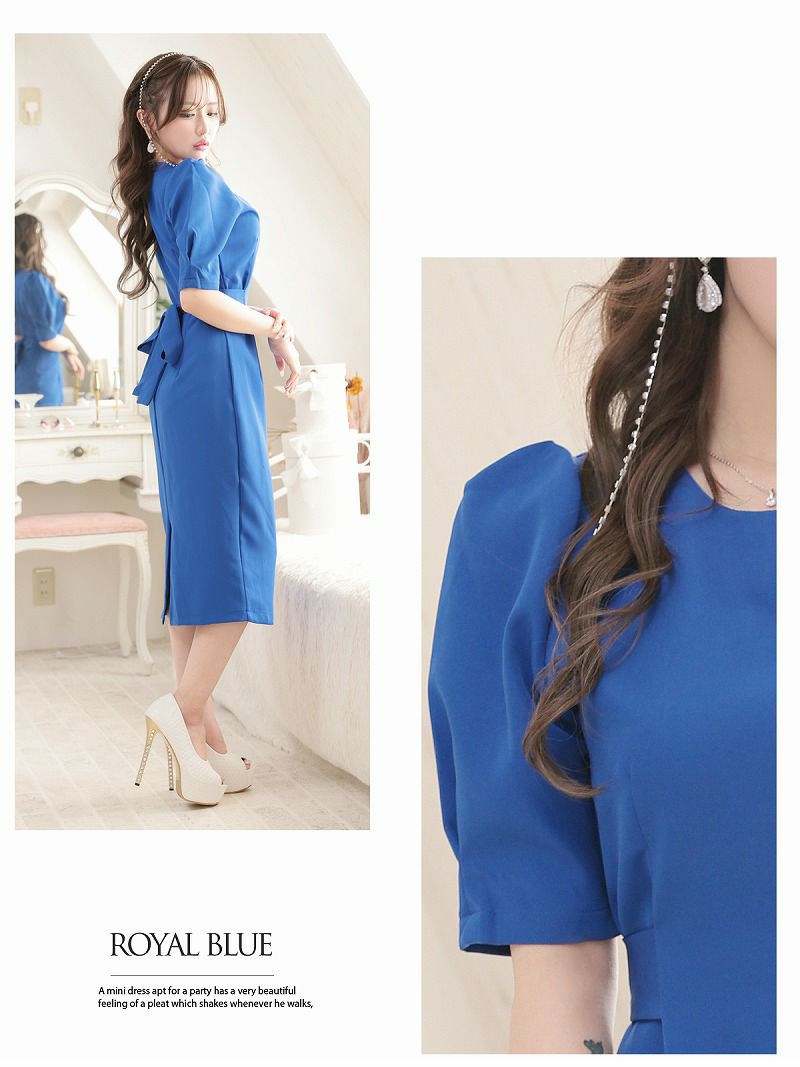 バックリボンタイト膝丈ブルーカラータイトキャバワンピース りせり 着用 キャバドレス【RyuyuChick】