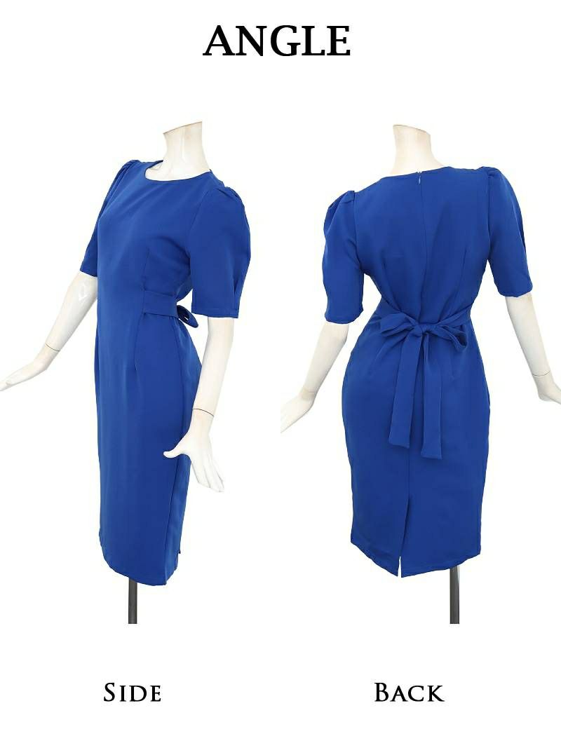 4. バックリボンタイト膝丈ブルーカラータイトキャバワンピース りせり 着用 キャバドレス【RyuyuChick】(S/M/L/XL(2L))(ブルー)