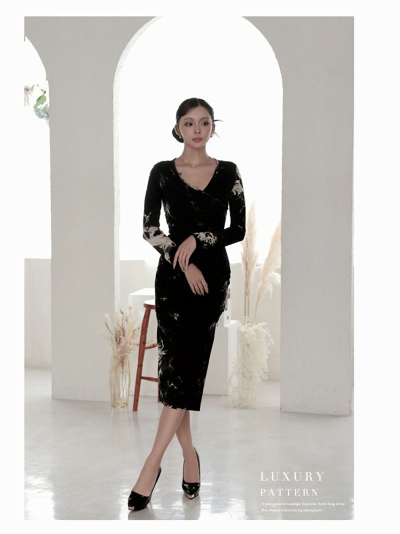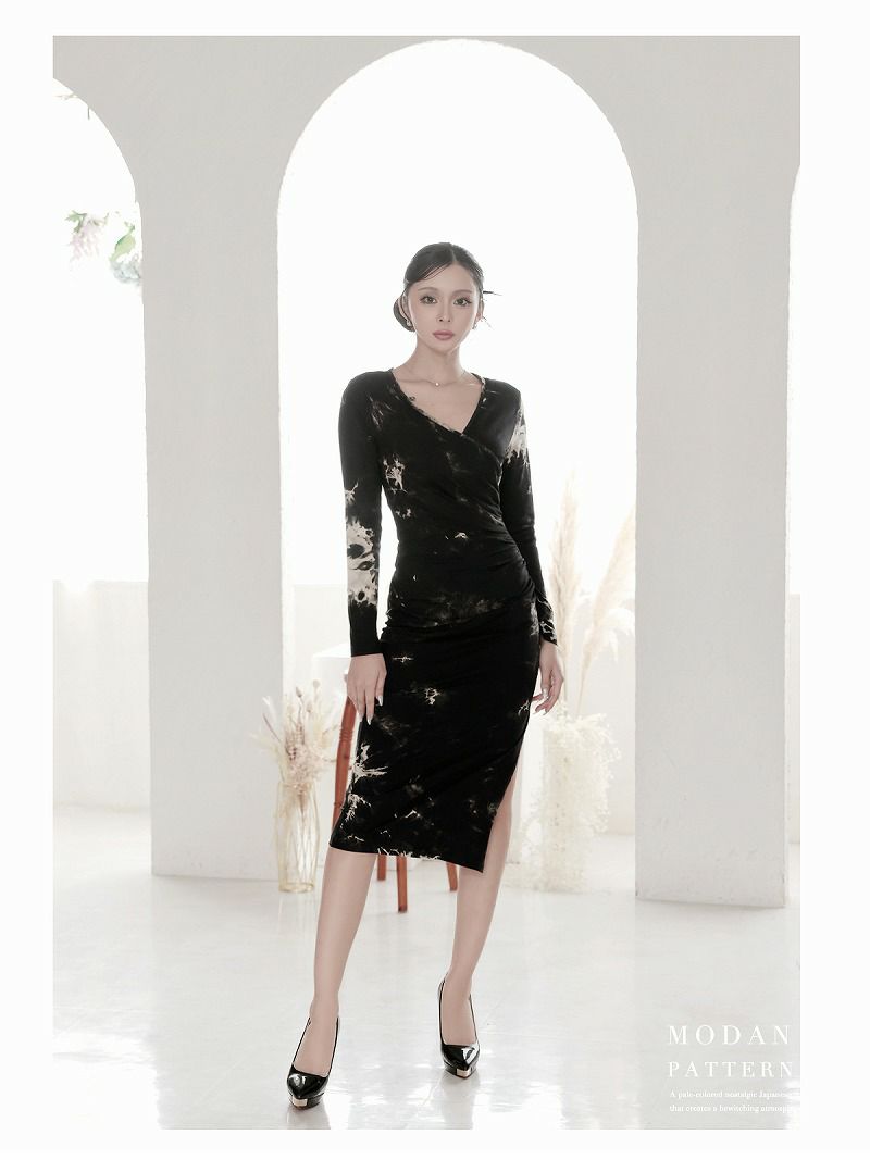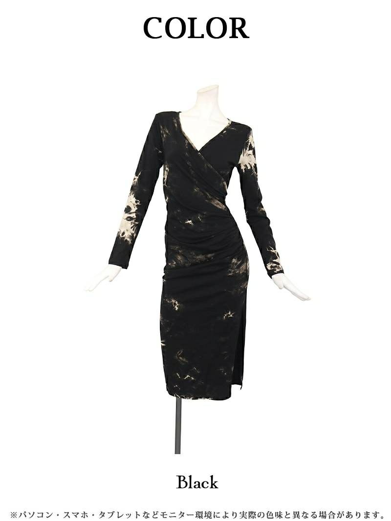 ワンランク上の大人コーデが完成! タイダイカシュクールギャザーミディ韓国ワンピース KANO 着用 キャバワンピース【DAYS PIECE】(S/M/L/XL(2L))(ブラック)