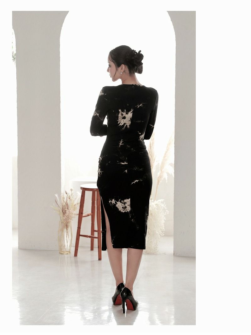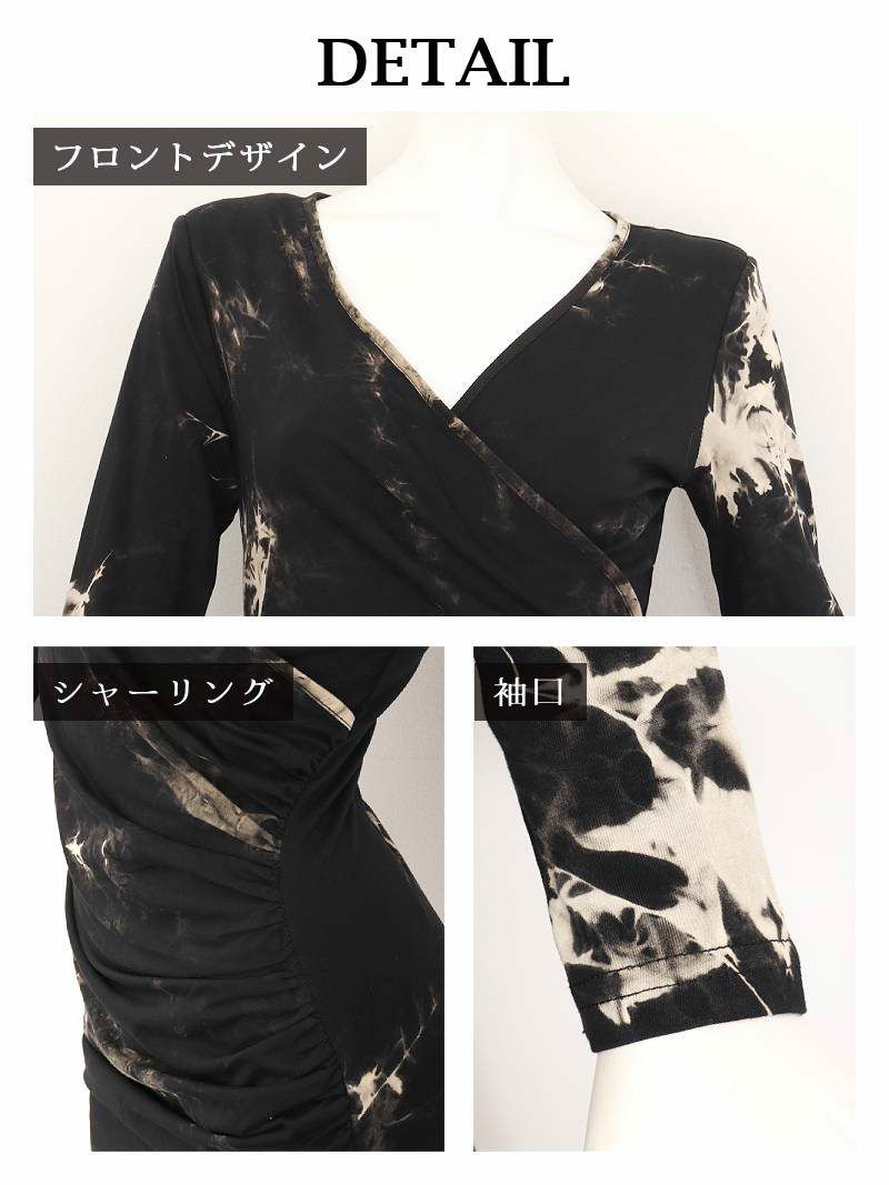 3. タイダイカシュクールギャザーミディ韓国ワンピース KANO 着用 キャバワンピース【DAYS PIECE】(S/M/L/XL(2L))(ブラック)