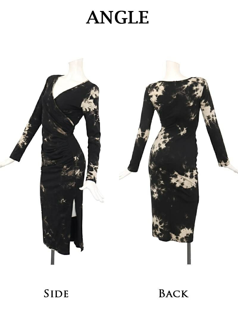 4. タイダイカシュクールギャザーミディ韓国ワンピース KANO 着用 キャバワンピース【DAYS PIECE】(S/M/L/XL(2L))(ブラック)
