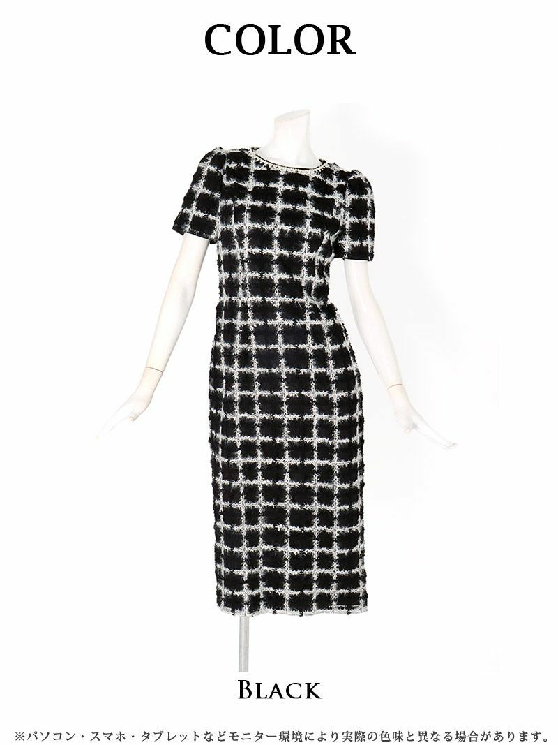 大人っぽく華やか!美シルエットで魅せる、上質な韓国キャバドレス 千鳥チェックラメモール入りドレッシー韓国ワンピース KANO 着用 キャバワンピース【DAYS PIECE】(S/M/L/XL(2L))(ブラック)