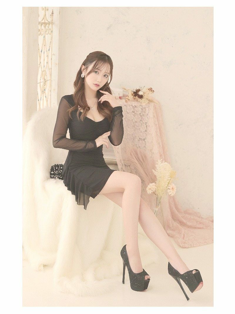 シアーな透け感と胸元ギャザーで、惹きつけるボディラインを叶えるミニドレス。 先行予約割¥3980→¥3781!※一部予約販売※シアースリーブデコルテギャザータイトミニドレス【RyuyuChick】(M/L)(レッド/ブラック/パープル/ホワイト)
