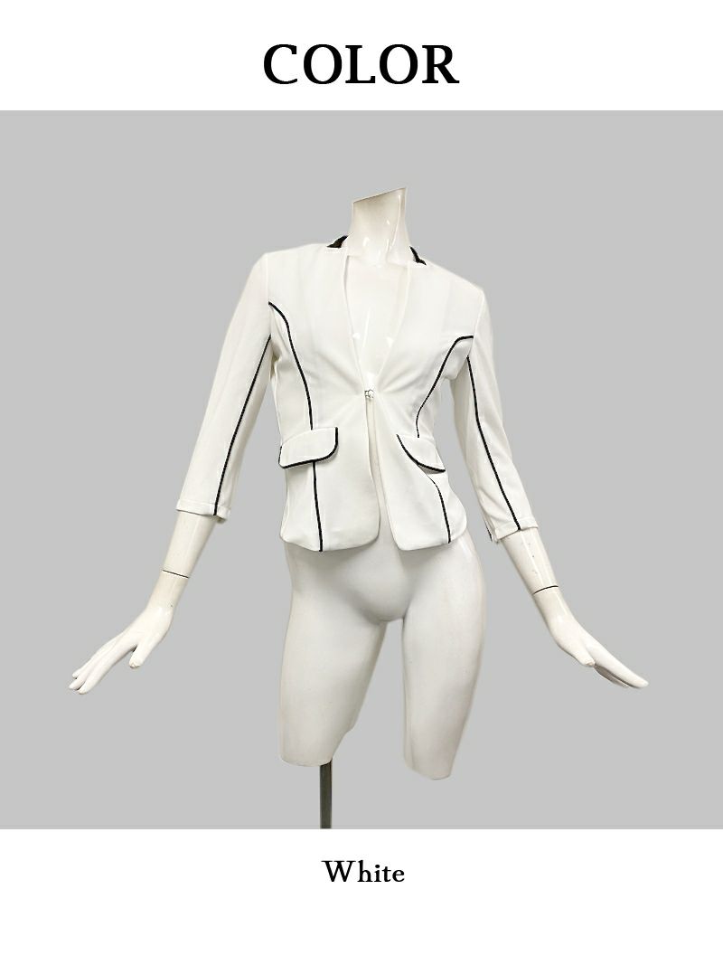 瞬時にスタイルアップ!デキる私を演出する勝負ジャケット 配色パイピング七分袖ノーカラージャケット【Ryuyu】(S/M/L)(ホワイト)