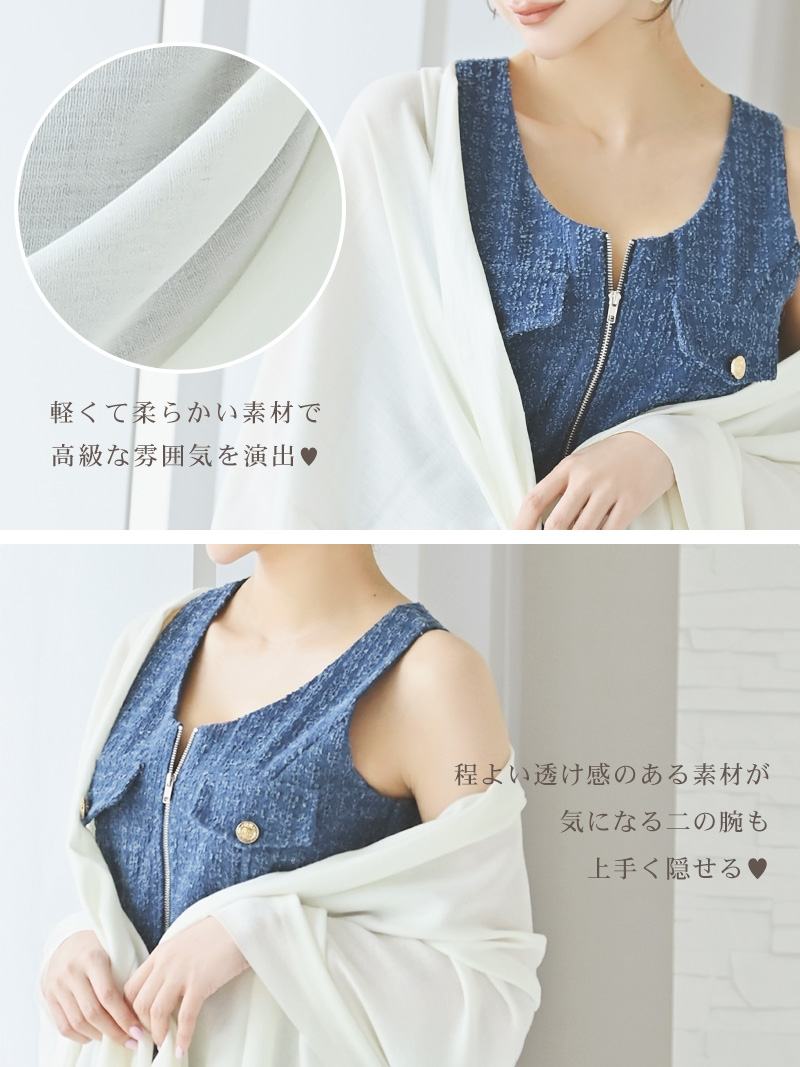 どんなドレスとも相性が良く、サッと羽織るだけで上品な雰囲気に仕上がります!