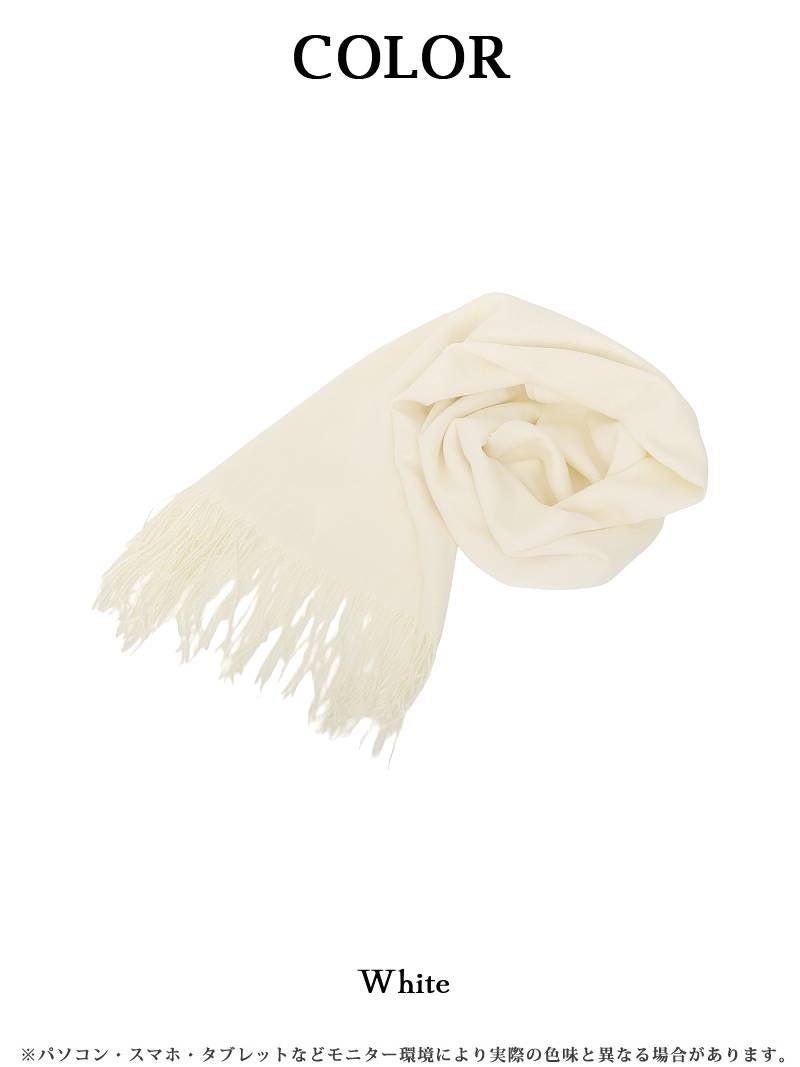 清楚なホワイトカラーがドレス姿を美しく引き立てるフリンジ付きの優雅な大判ストール 【Ryuyu】