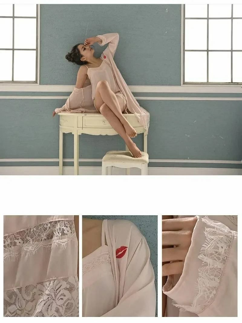 淡いピンクが女性らしく可愛いルームウェアは、繊細レースとワンポイントのリップモチーフの刺繍でえちえちセクシーに!