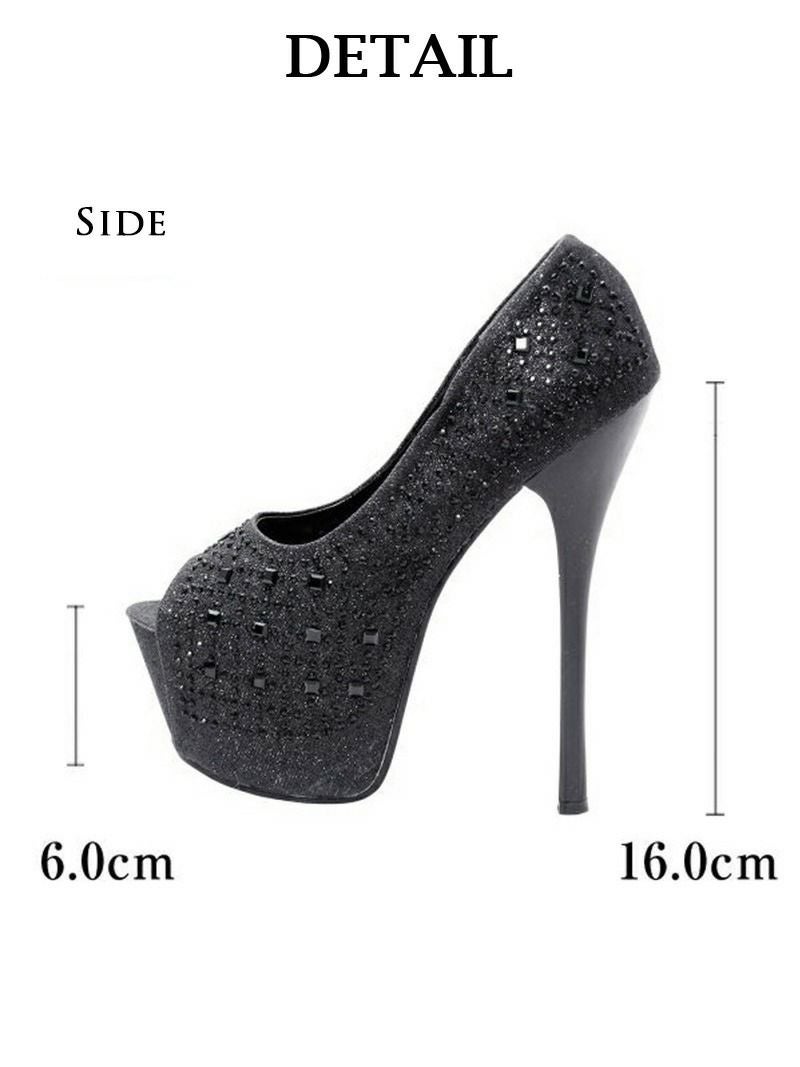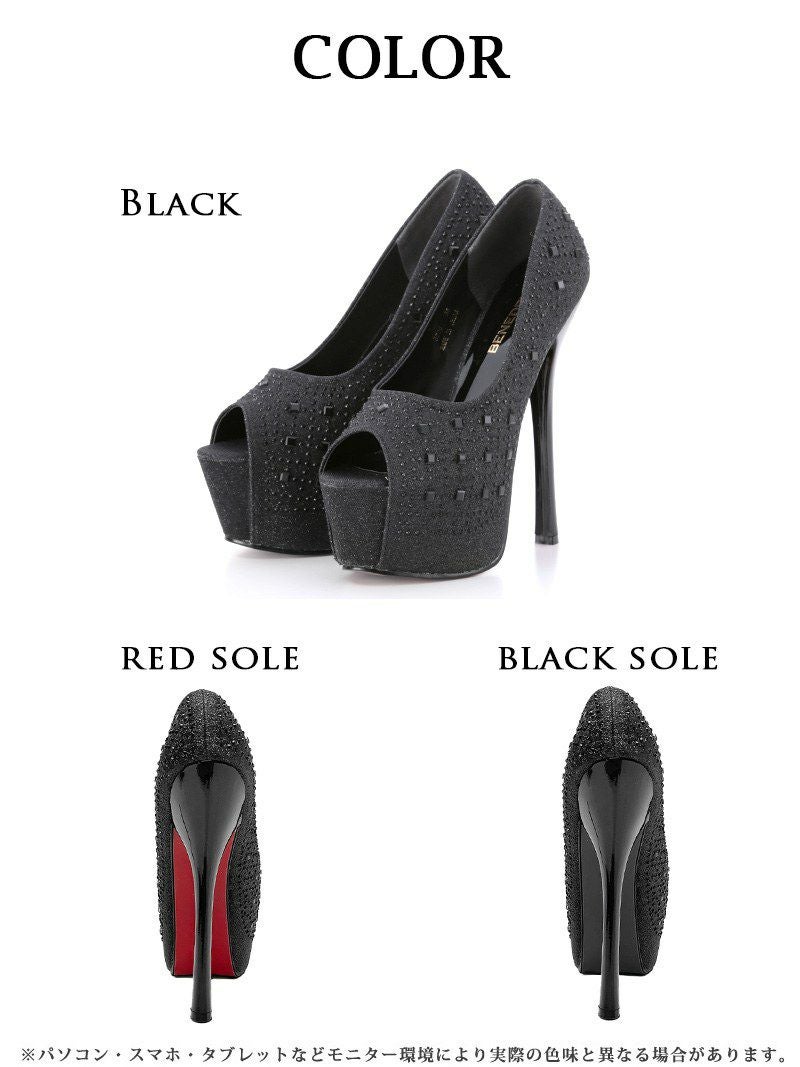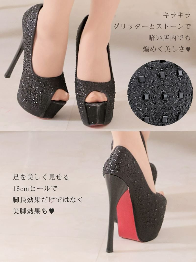 輝くジュエリー、当店の美脚パンプス 煌ジュエリー美脚オープントゥヒールパンプス 16.0cmヒール【Ryuyu】前厚オープントゥキャバパンプス(XS/S/M/L/XL)(ブラック(赤ソール)/シルバー(赤ソール)/ブラック(黒ソール)/シルバー(黒ソール))