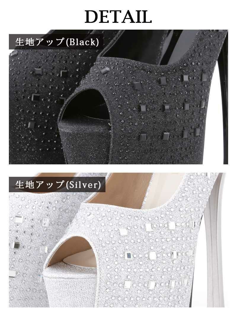 3. 煌ジュエリー美脚オープントゥヒールパンプス 16.0cmヒール【Ryuyu】前厚オープントゥキャバパンプス(XS/S/M/L/XL)(ブラック(赤ソール)/シルバー(赤ソール)/ブラック(黒ソール)/シルバー(黒ソール))