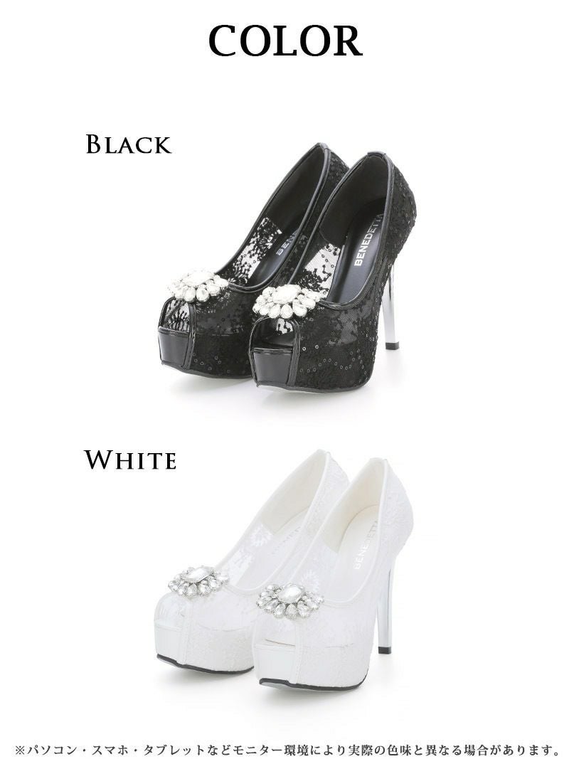 4. ビッグビジュー×レースキャバパンプス【Ryuyu】(XS/S/M/L)(ブラック/ホワイト)
