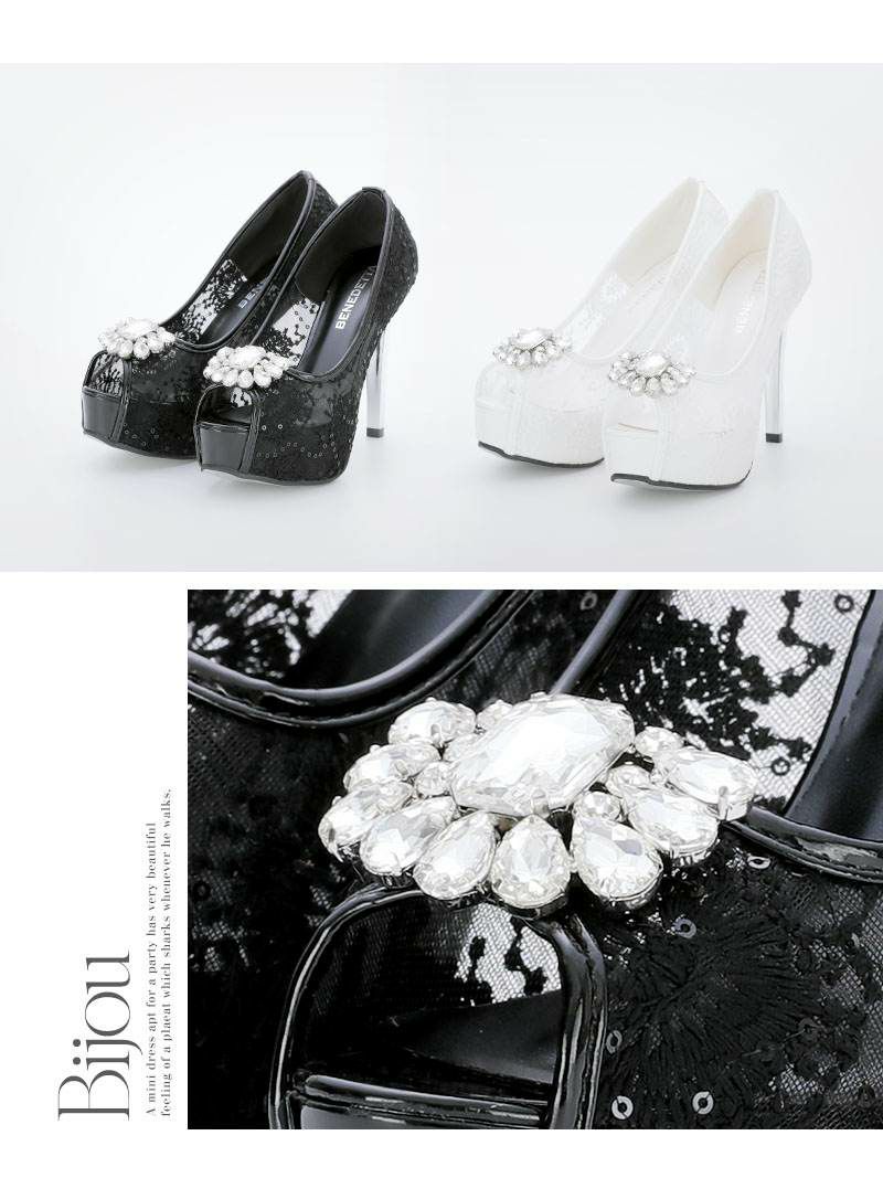 4. スーパーセール¥5480→¥4931! ビッグビジュー×レースキャバパンプス【Ryuyu】(XS/S/M/L)(ブラック/ホワイト)