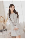 おしゃれでイイ女になれる☆ パールボタンツイード襟付き韓国風プリーツスカートスーツ 武田静加 着用 キャバスーツ【Belsia】(S/M/L)(ブラック/グレー/アイボリー)