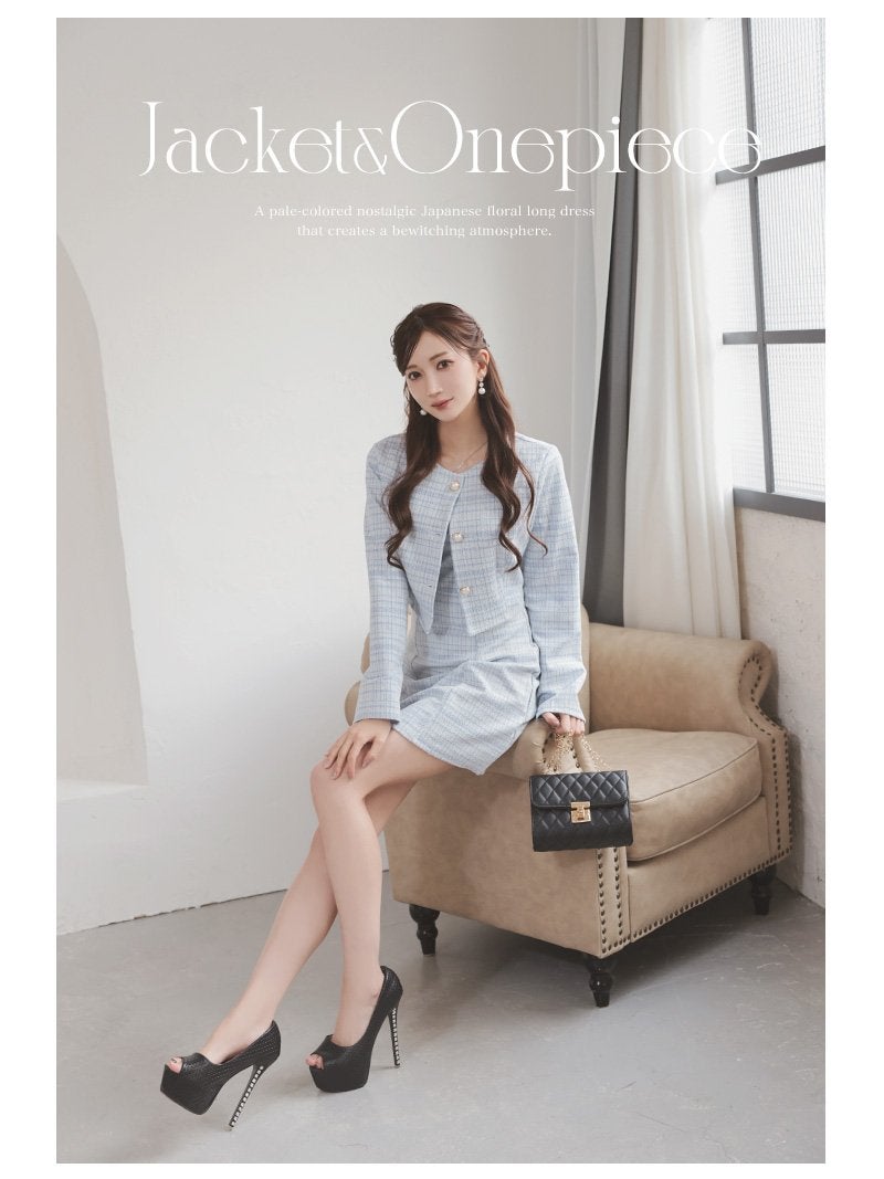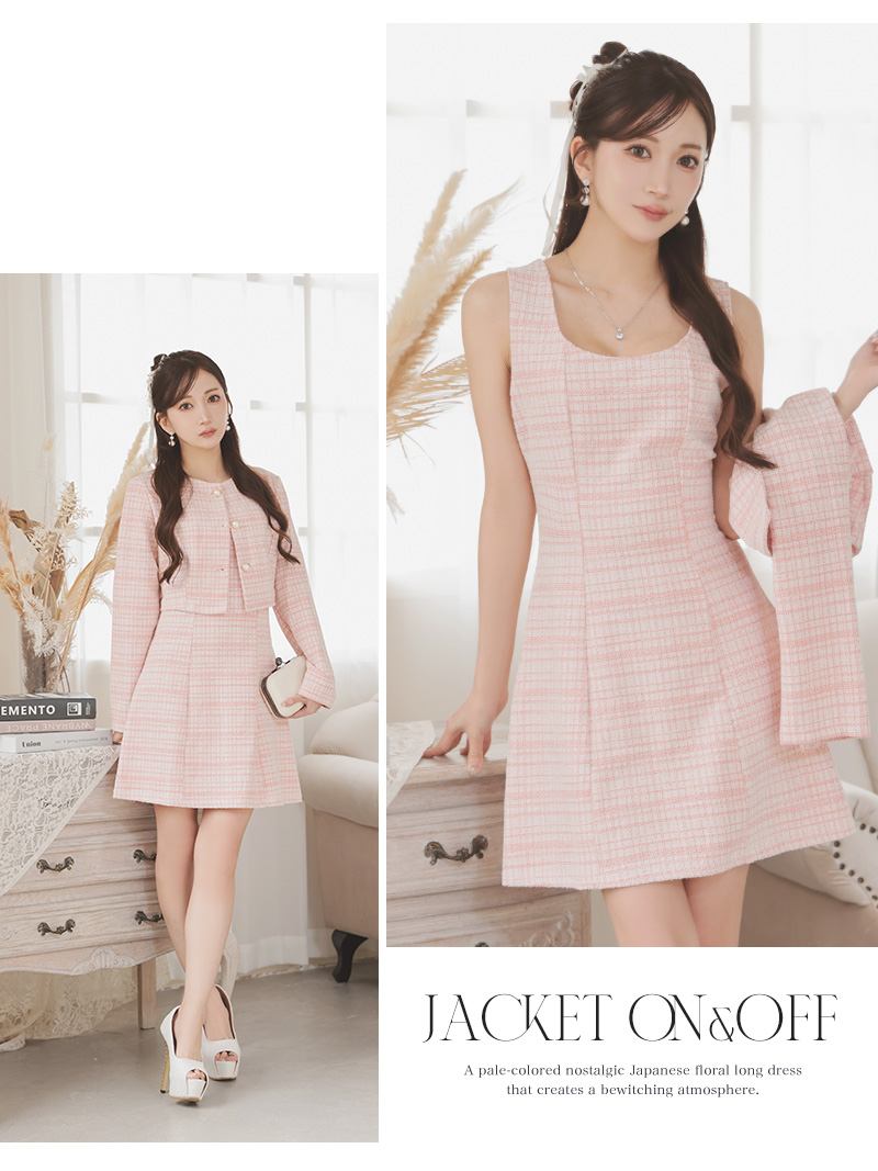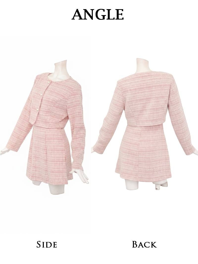 ボレロ風のジャケットでスタイルアップ 韓国風ラメツイードキャバスーツ 加賀美早紀 着用セットアップ【BelsiaLUX】(S/M/L)(オフホワイト/ピンク/グレー)