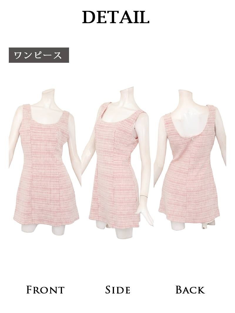 カラーツイードでおしゃれ上級者! カラーツイード膝丈タイトキャバスーツ 加賀美早紀 着用レディーススーツ【Belsia】(S/M/L)(ブラック/ピンク)