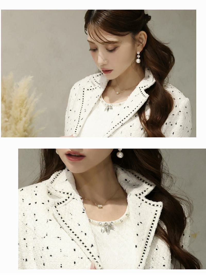 ライトツイード韓国風タイトセットアップスーツ【Belsia】(S/M/L/XL(2L))(ブラック/アイボリー)