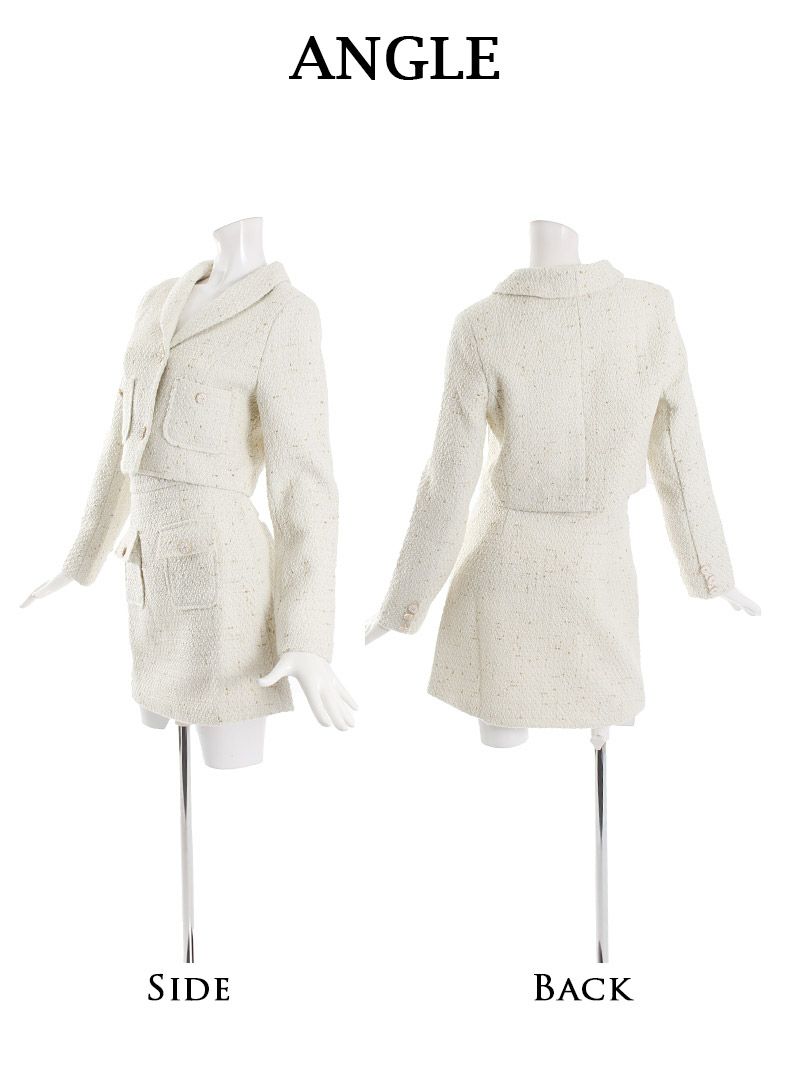 4. MIXツイードショート丈ジャケットキャバスーツ 加賀美早紀 着用レディーススーツ【Belsia】(S/M/L)(ブラック/アイボリー)