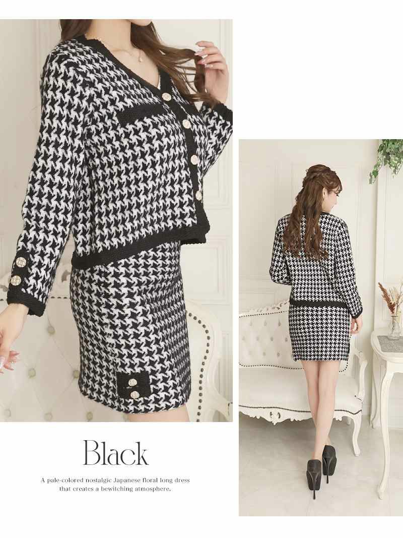 ニット素材が柔らか気持ちいい♪ スーパーSALE¥8280→¥6624! 千鳥格子セットアップニットキャバスーツ【Ryuyu】(M)(ブラック)