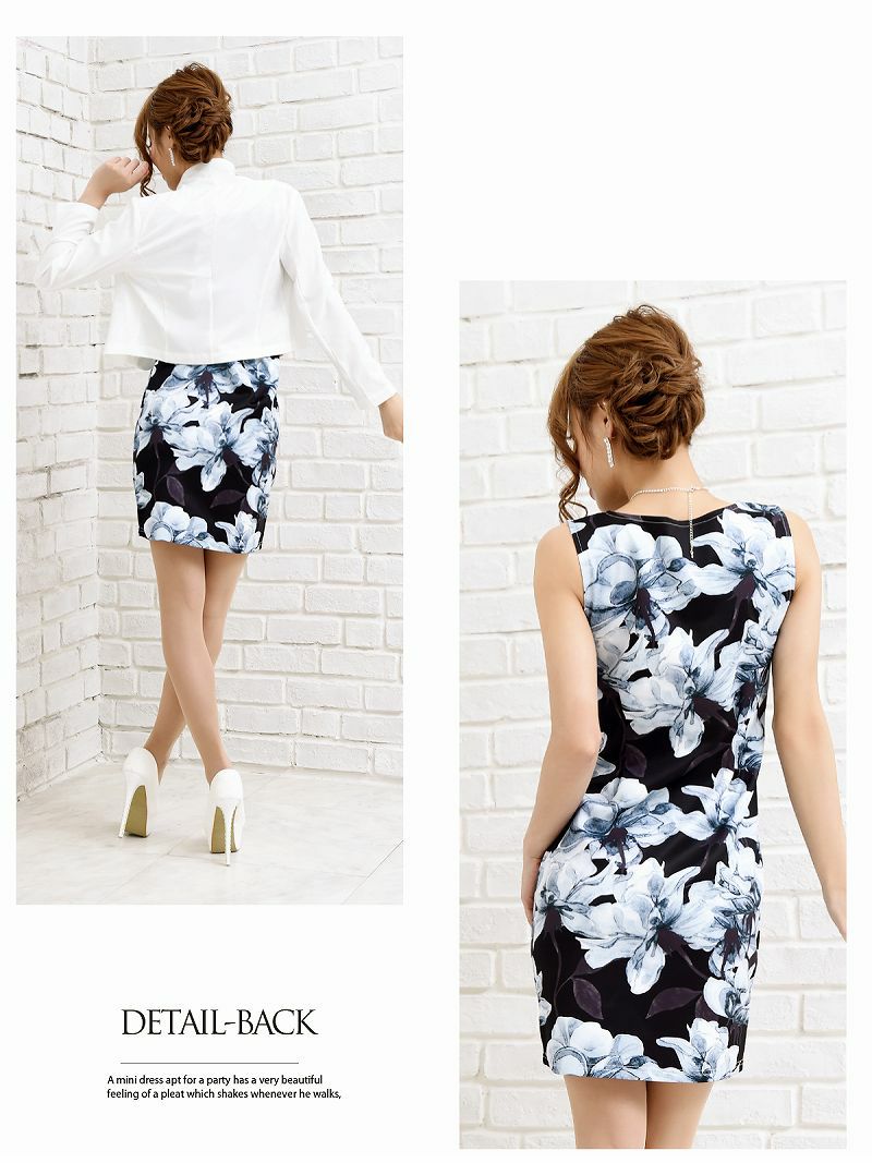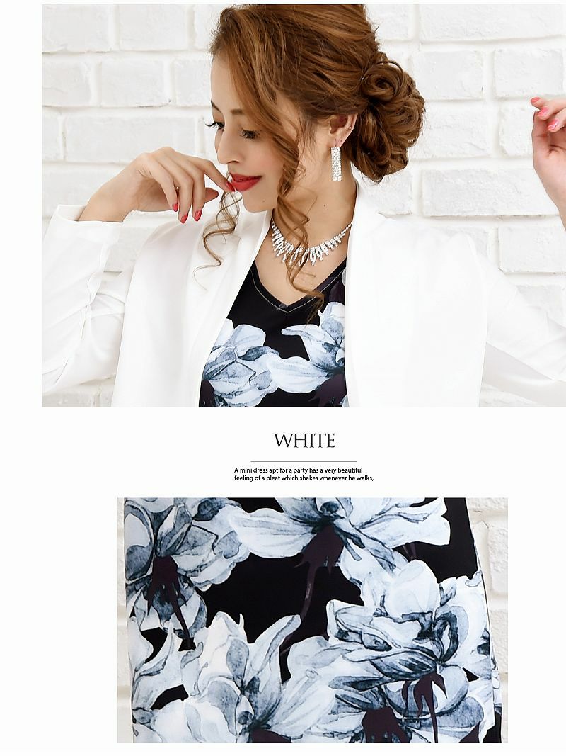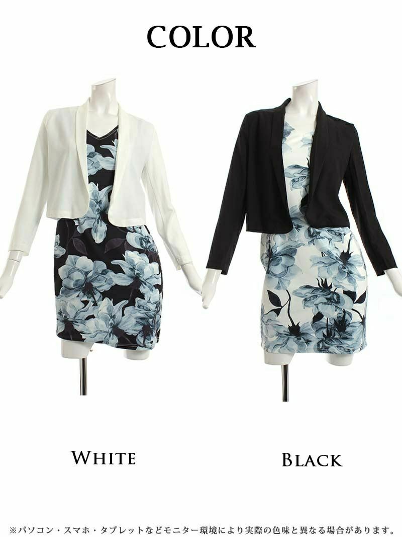4. 【訳ありアウトレット】花柄ワンピースキャバスーツ【Ryuyu】(S/M/L/XL)(ブラック/ホワイト)